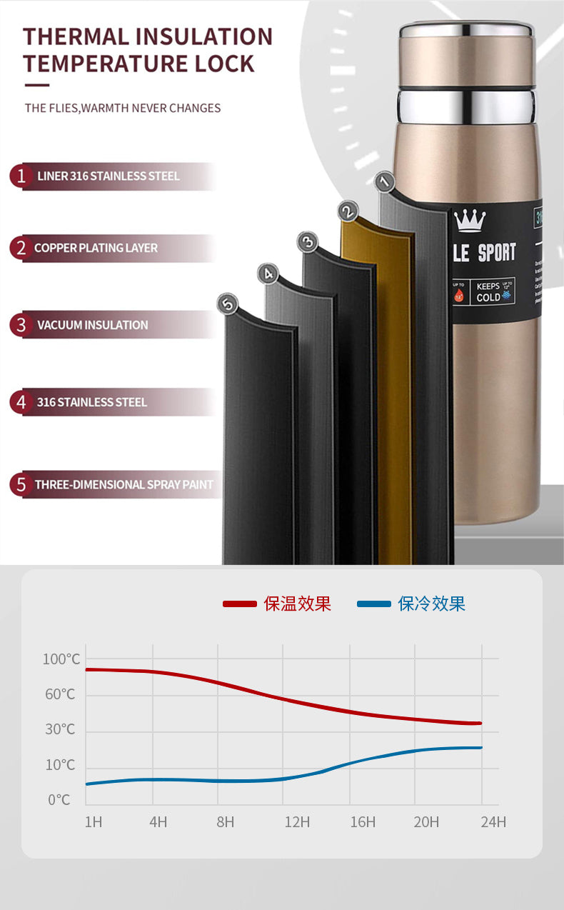 1000ml Thermos Bottle Water Bottle Double Stainless Steel Vacuum Flask Travel Office Fitness Thermos Water Bottles Drinkware
