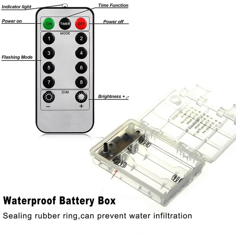 [Remote& Timer]Wireless Remote Control 8 Modes light sequences and Auto timer(6 hours on, 18 hours off)