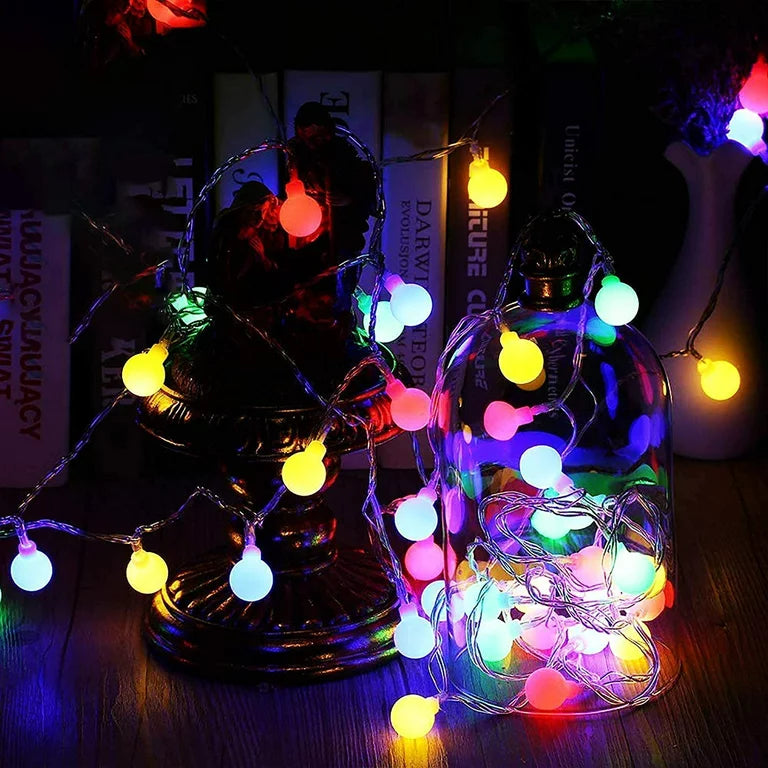 [33feet/10M ]QISHI battery string light lenght 33feet,is consist of 100 translucent globes, the diameter of each globe is 0.7 inch and spaced every 4 inch