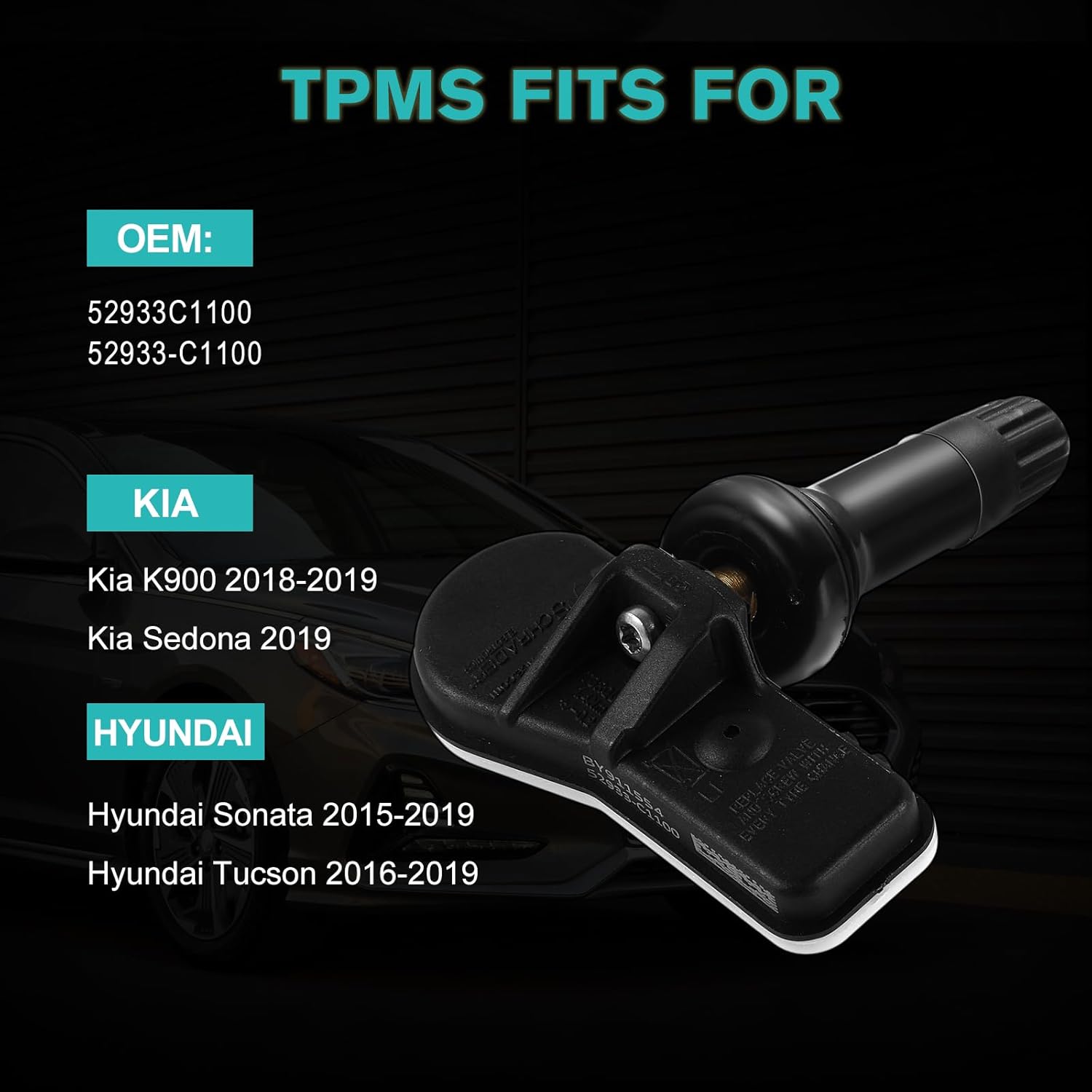 - 52933C1100 Tire Pressure Monitoring System TPMS Sensors Compatible with Hyundai Sonata 2015-2019, Hyundai Tucson 2016-2019, Kia K900 2018 2019,Kia Sedona 2019