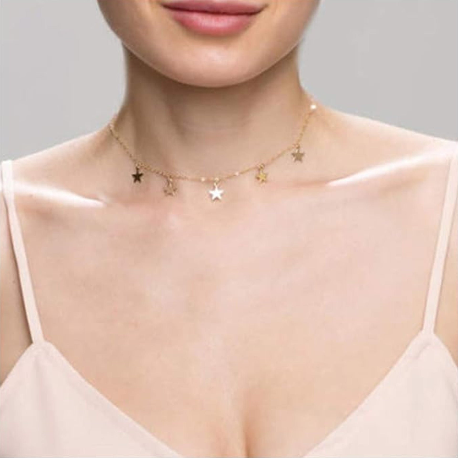 - Aetorgc Choker Classy Necklace Chain Gold Star Pendant Necklace Jewelry for Women and Girls (Gold), Free Size