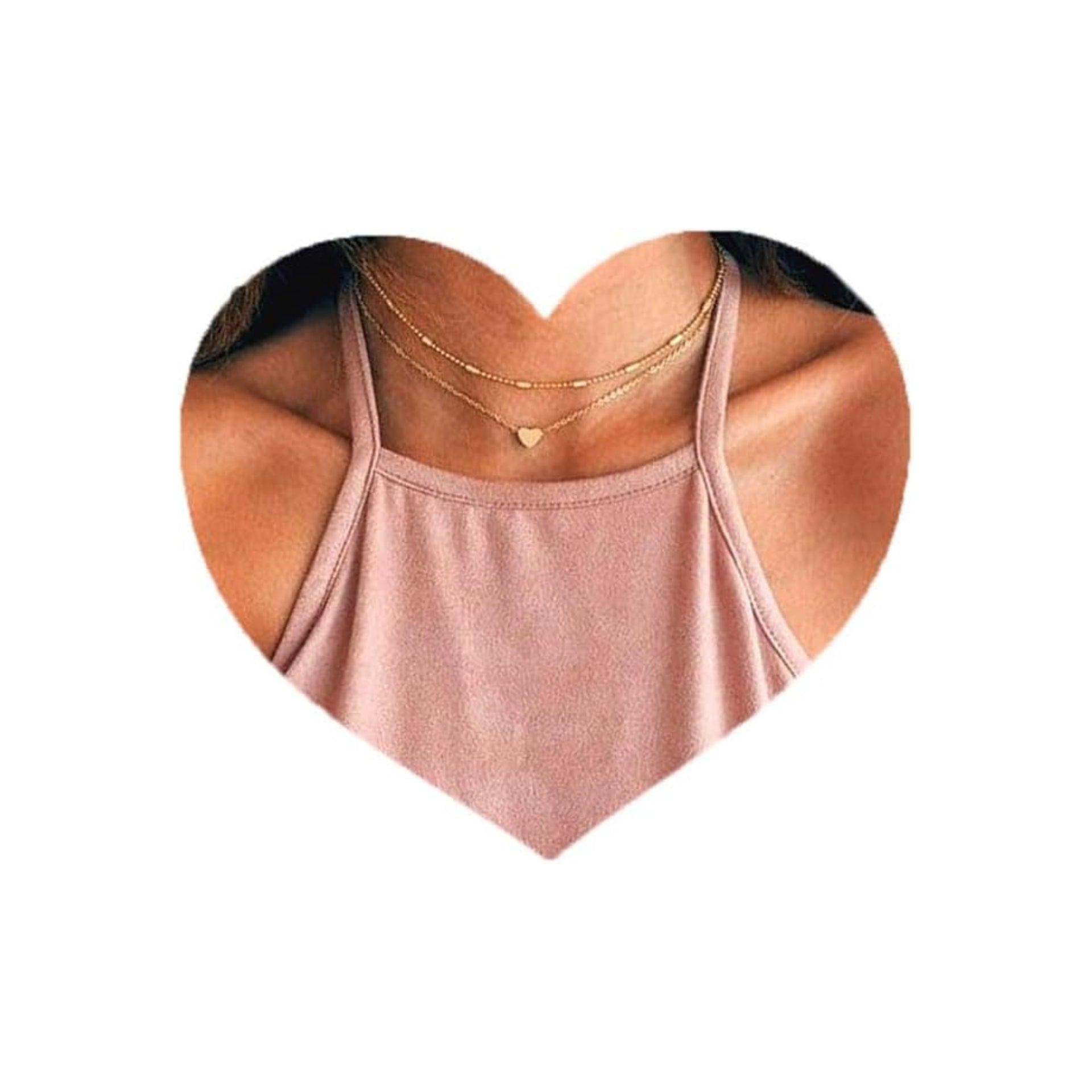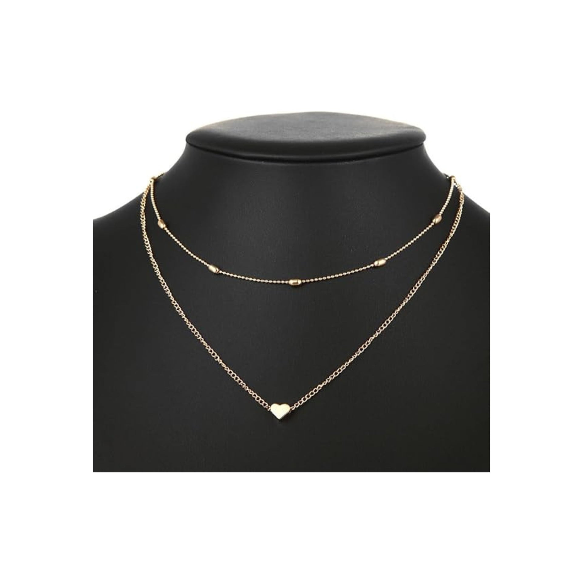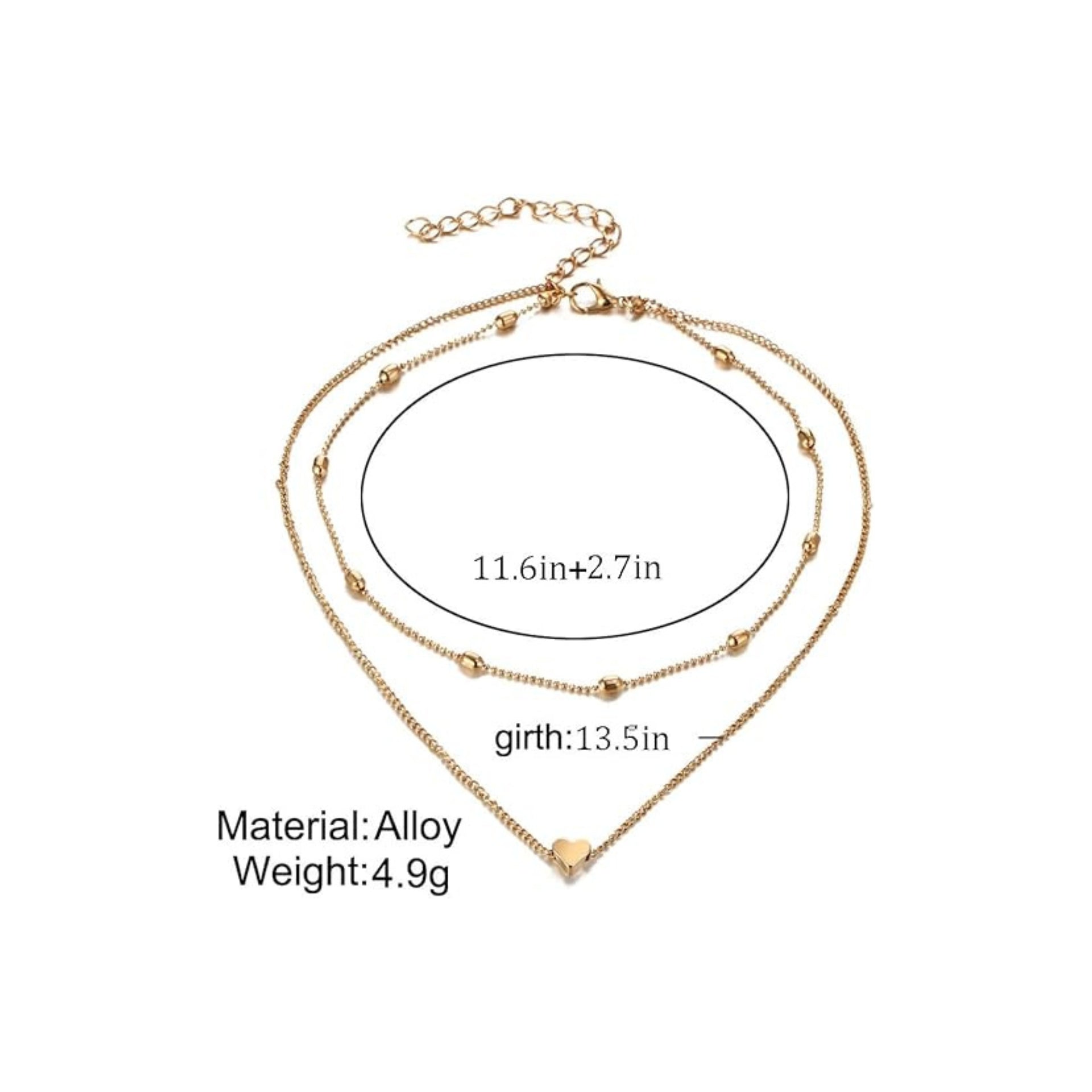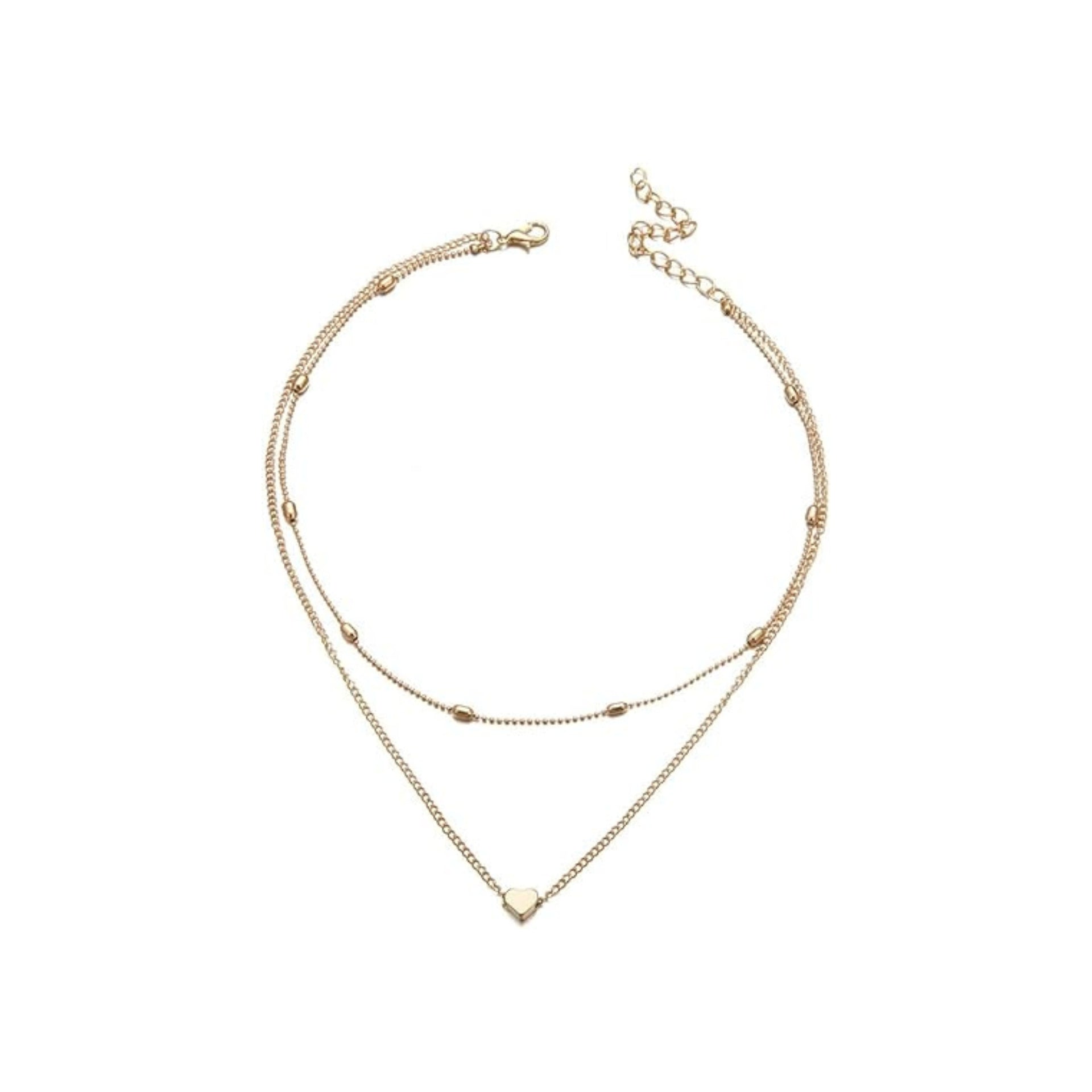 Aluinn Love Heart Layered Choker Necklace Golc Simple Beads Pendant Necklace Simple Chain for Women