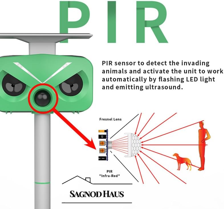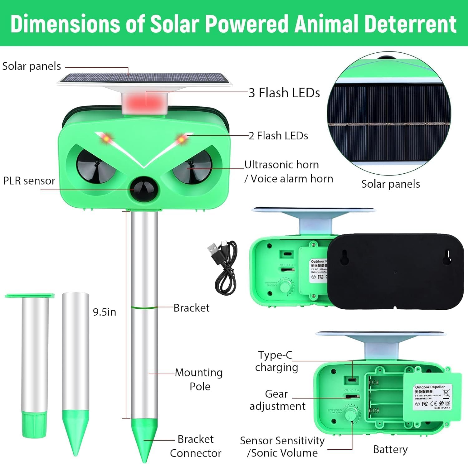Animal Repellent Outdoor,Ultrasonic Pest Repeller with Motion, Light Sensor and Sound for Cat/Birds/Deer/Skunk/Rat/Squirrel. Deterrent Devices for Yard,Garden,Farm,Patio