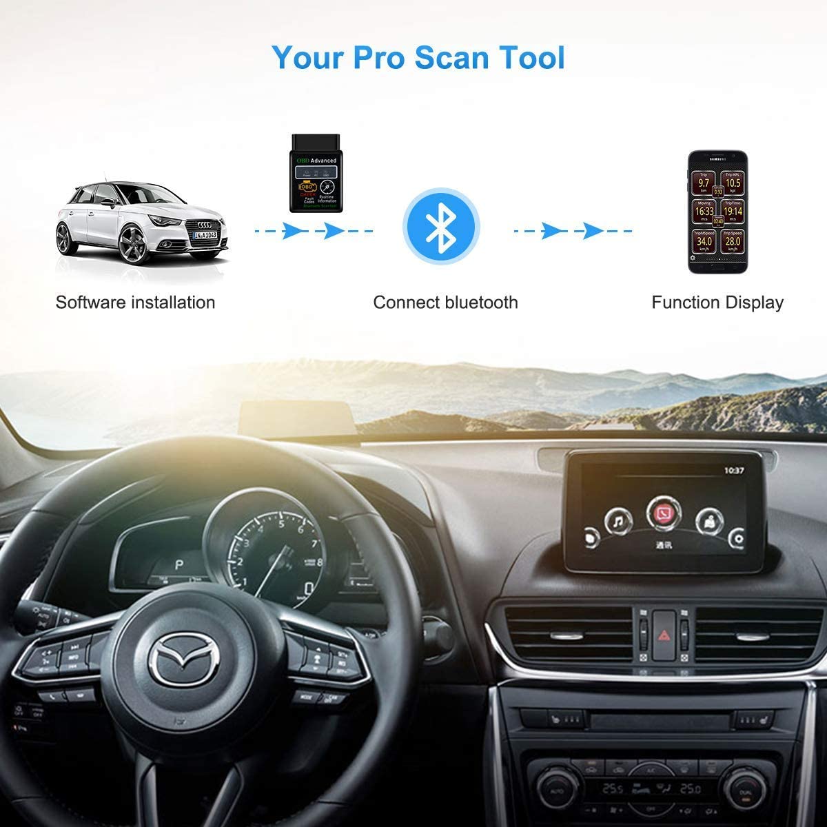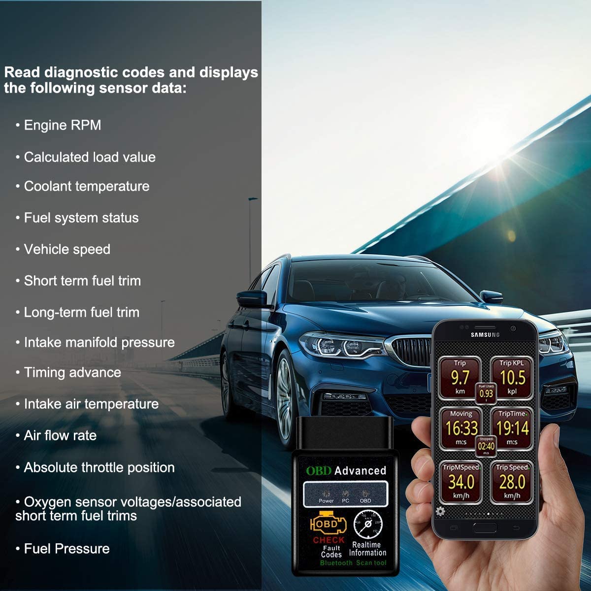 Bluetooth Scanner, OBD2 Reader Car Scanner OBDII Diagnostic Scanner Auto Check Car Engine Fault Bluetooth Scanner Tool QiLong