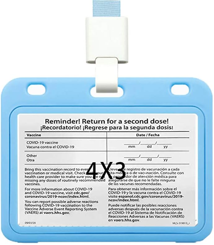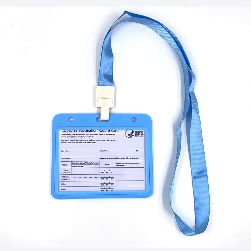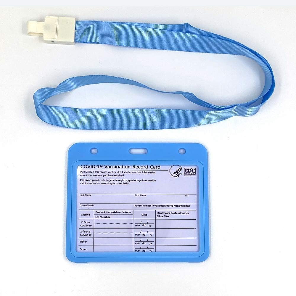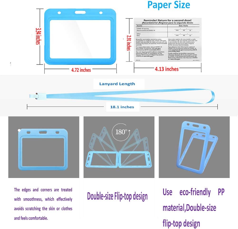 Card Holder Card Protector 4 X 3 Inches with Lanyard Horizontal Style Transverse Double Side Clear PP Plastic Sleeve Badge Card Holder (Light Blue,1 Pack)