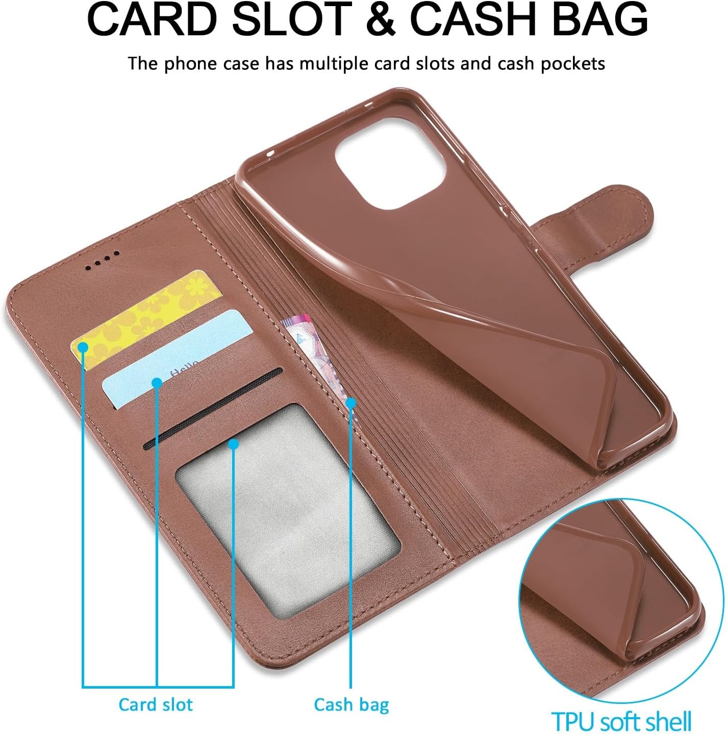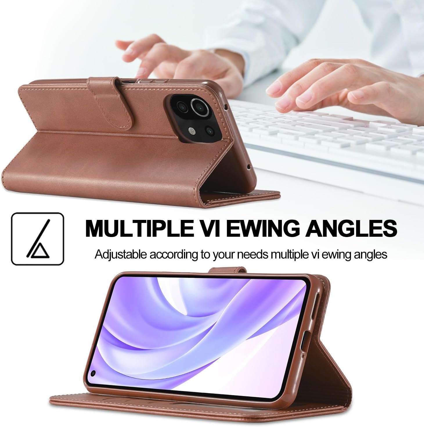 Cell Phone Flip Case Cover Compatible with Xiaomi Mi 11 Lite Wallet Case with Card Holder,[TPU Shockproof Interior Protective Case] [Card Slot] [Kickstand] [Magnetic Closure] Leather Flip Cover(Brown)