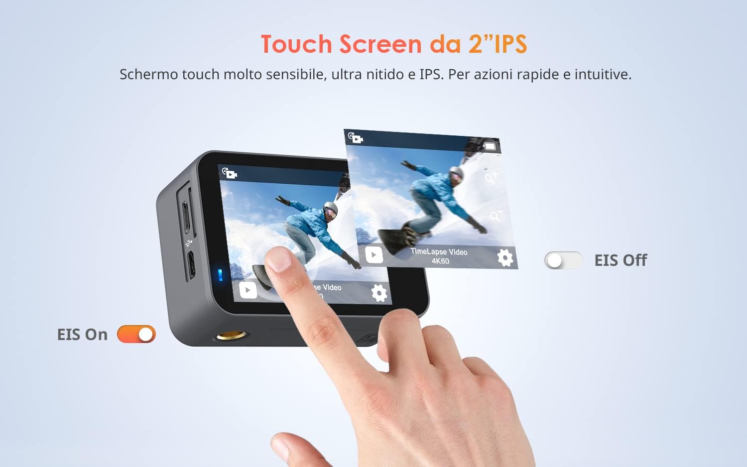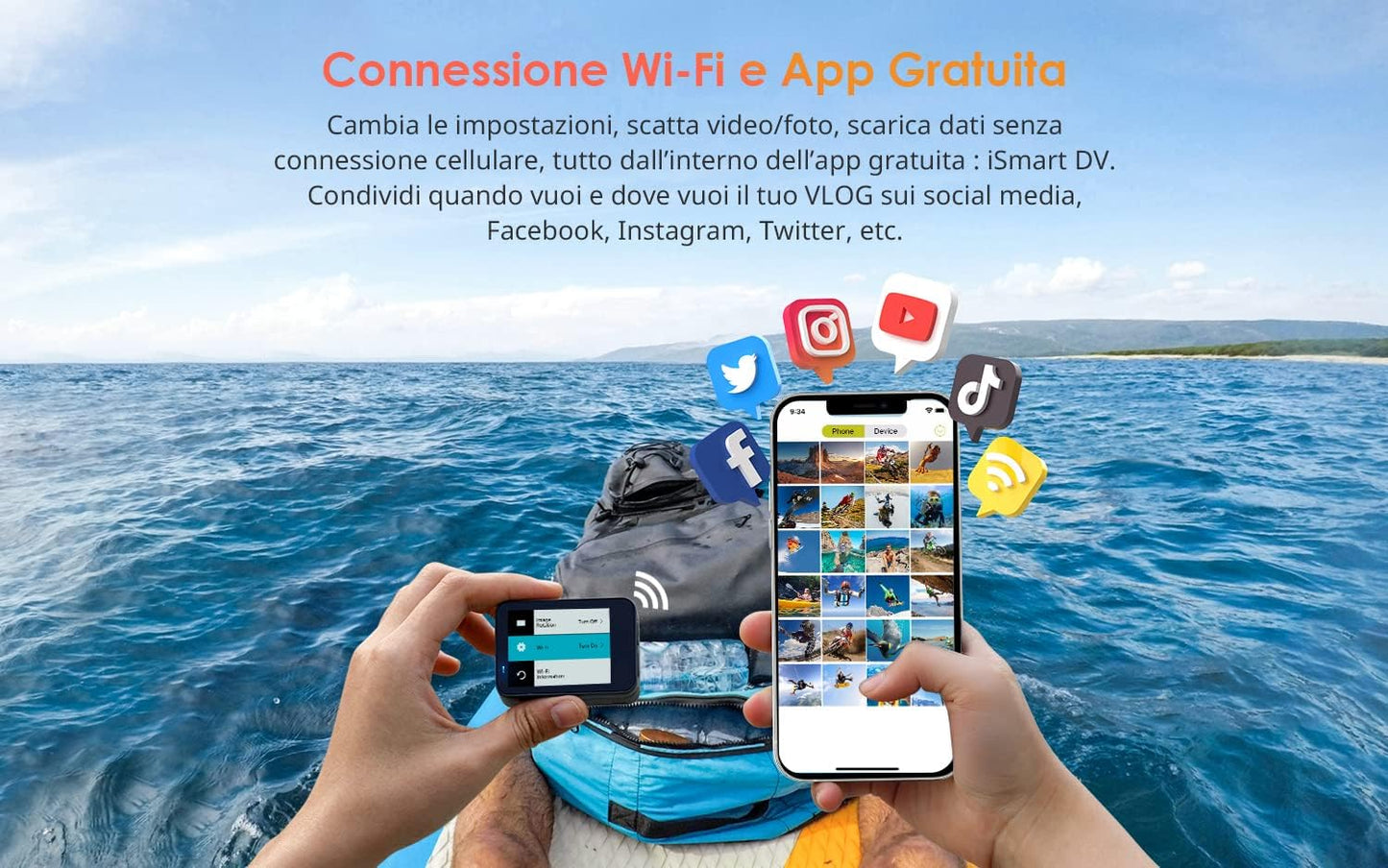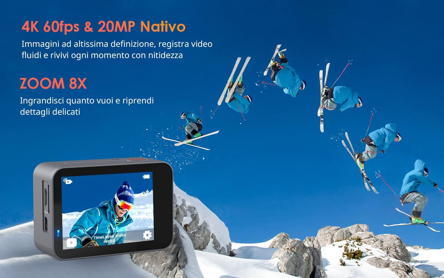 COOAU Native 4K 60fps 20MP Touch Screen Wi-Fi Action Sports Camera with 8XZoom EIS Anti-Shake 40M Waterproof Underwater Case 170° Adjustable Wide Angle External Microphone 2x1350mAh Batteries