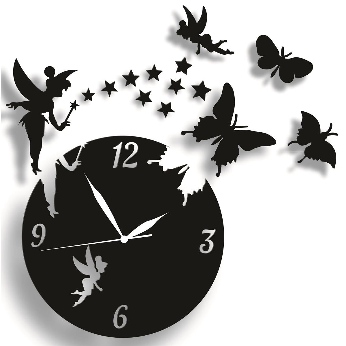 - Digital 3D Laser Cut Wooden Wall Clocks, clocks for home, beautiful clock, clocks for Bedroom - Wall Clock for Living Room - Designer Wooden Fairy with Butterflies Wall Clock for Home Décor