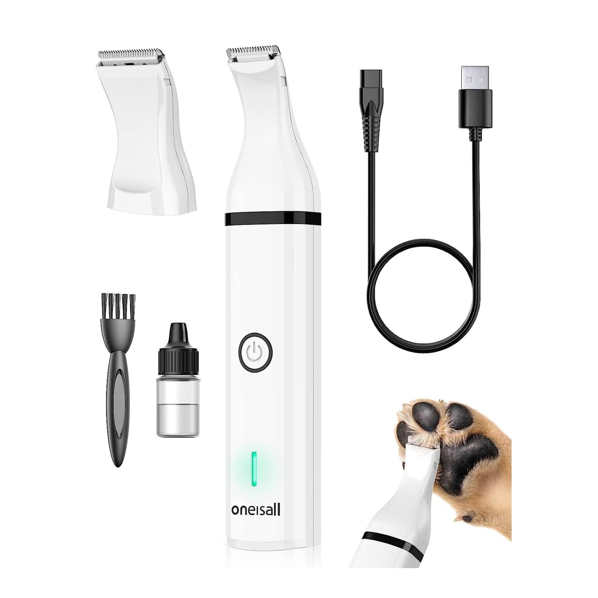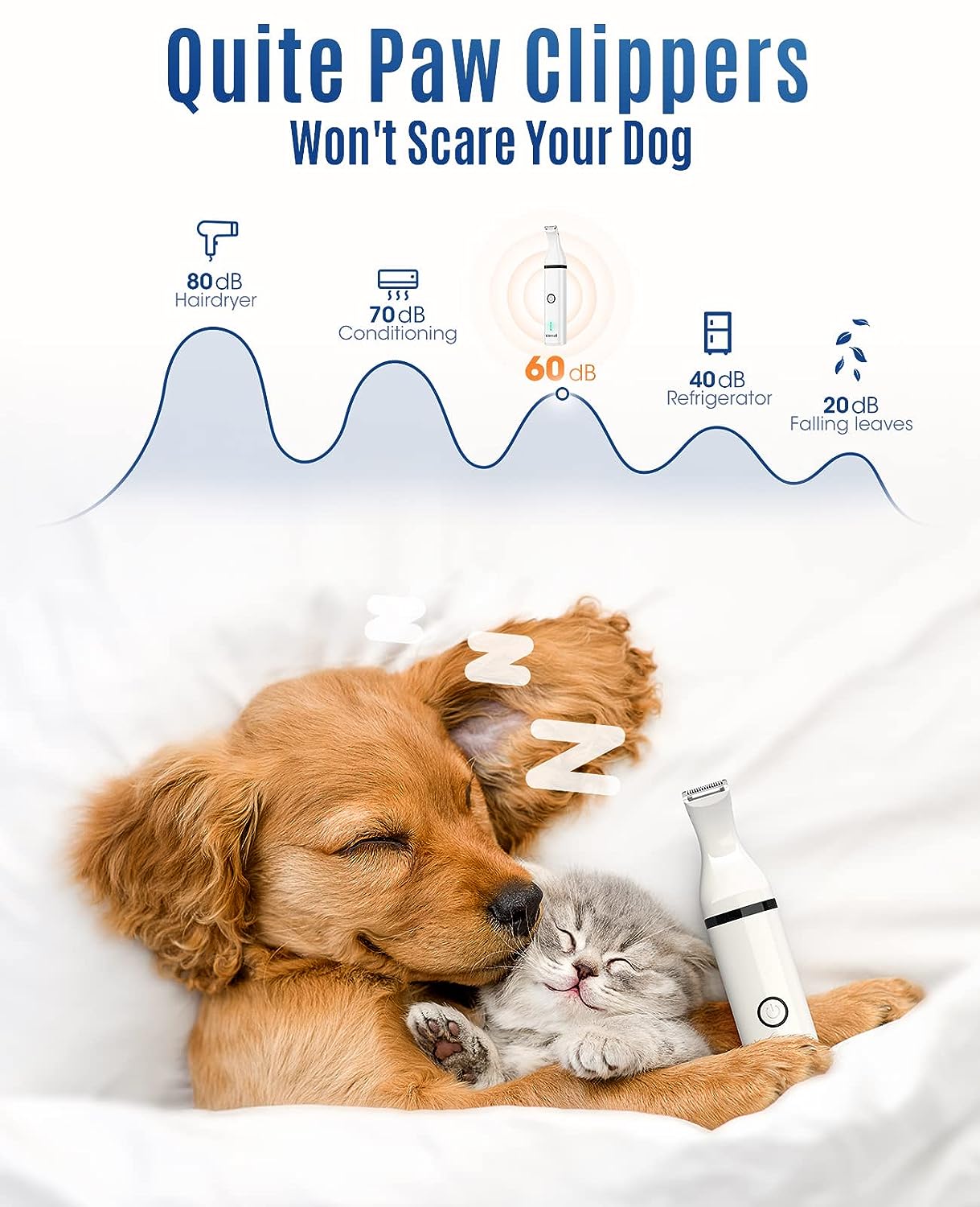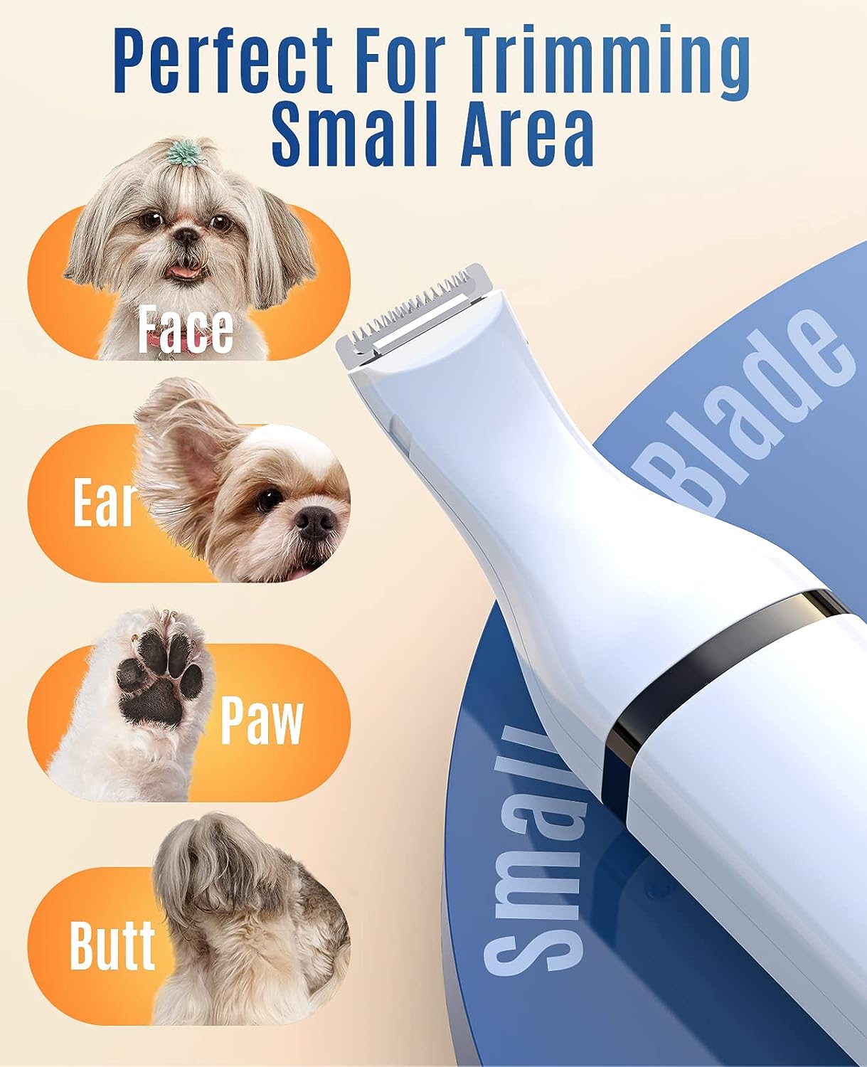 Dog Clippers with Double Blades,Cordless Small Pet Hair Grooming Trimmer,Low Noise for Trimming Dog's Hair Around Paws, Eyes, Ears, Face, Rump (White)