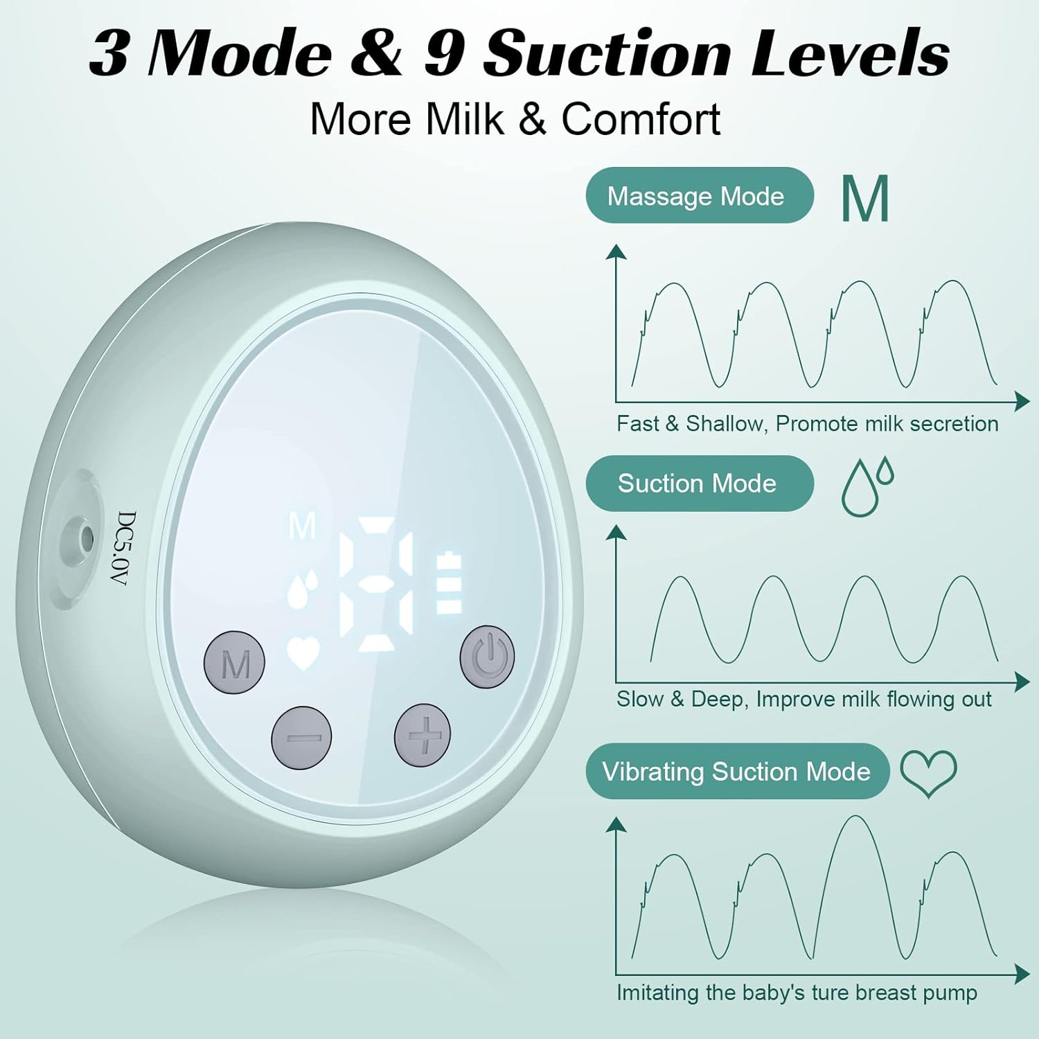Double Electric Breast Pumps Portable - Electric Breastfeeding Pumps 3 Modes 9 Levels LCD Display Rechargeable Breast Milk Pump, BPA Free, Green (24mm Flange)