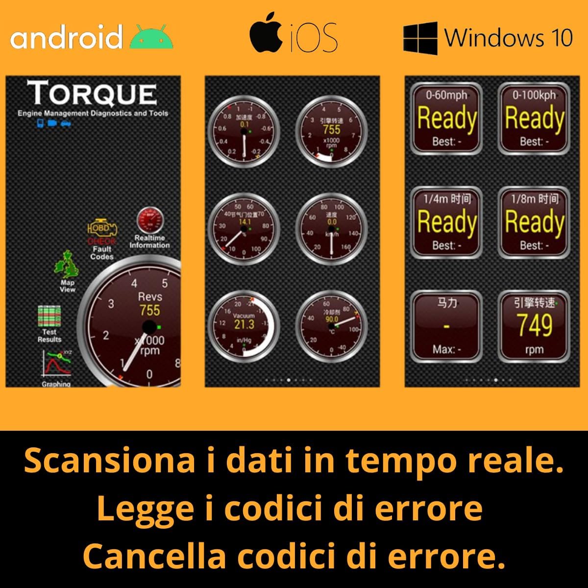 ELM327 OBD2 OBD2 OBD2 Bluetooth Diagnostic Scanner, OBD Scanner, OBD Diagnosis, Multi Brand Compatible with iOS Android Windows Devices