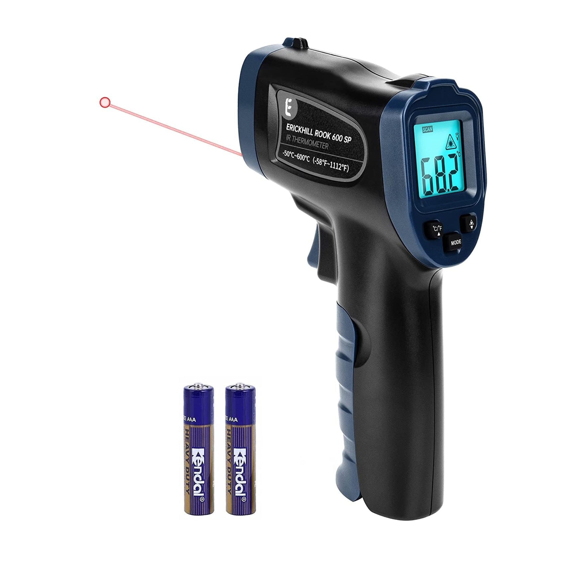 ERICKHILL Non-Contact Infrared Thermometer -50℃~600℃ LCD Backlit Screen Adjustable Emissivity - for Vehicle Repair/Cooking/BBQ/Freezer/Fridge/Baking