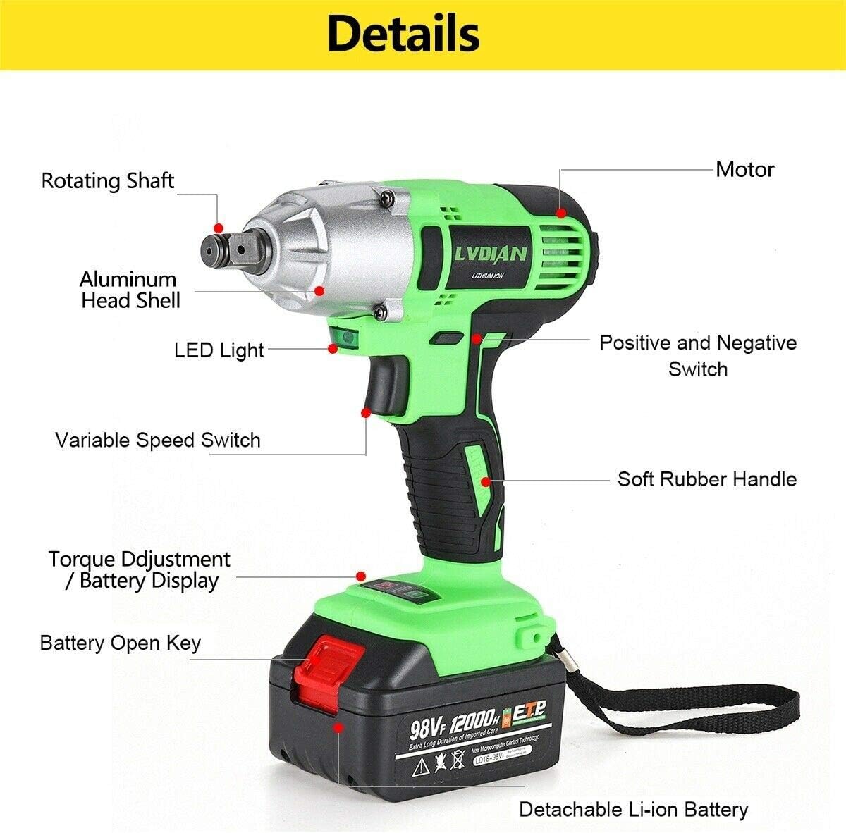 ETP 98VF 320NM (Without Box) 1/2 Electric 12800mah Cordless Drill Impact Wrench Torque Tool Lock LED for DIY, Home and General Building, Engineering Using, Car Repairing