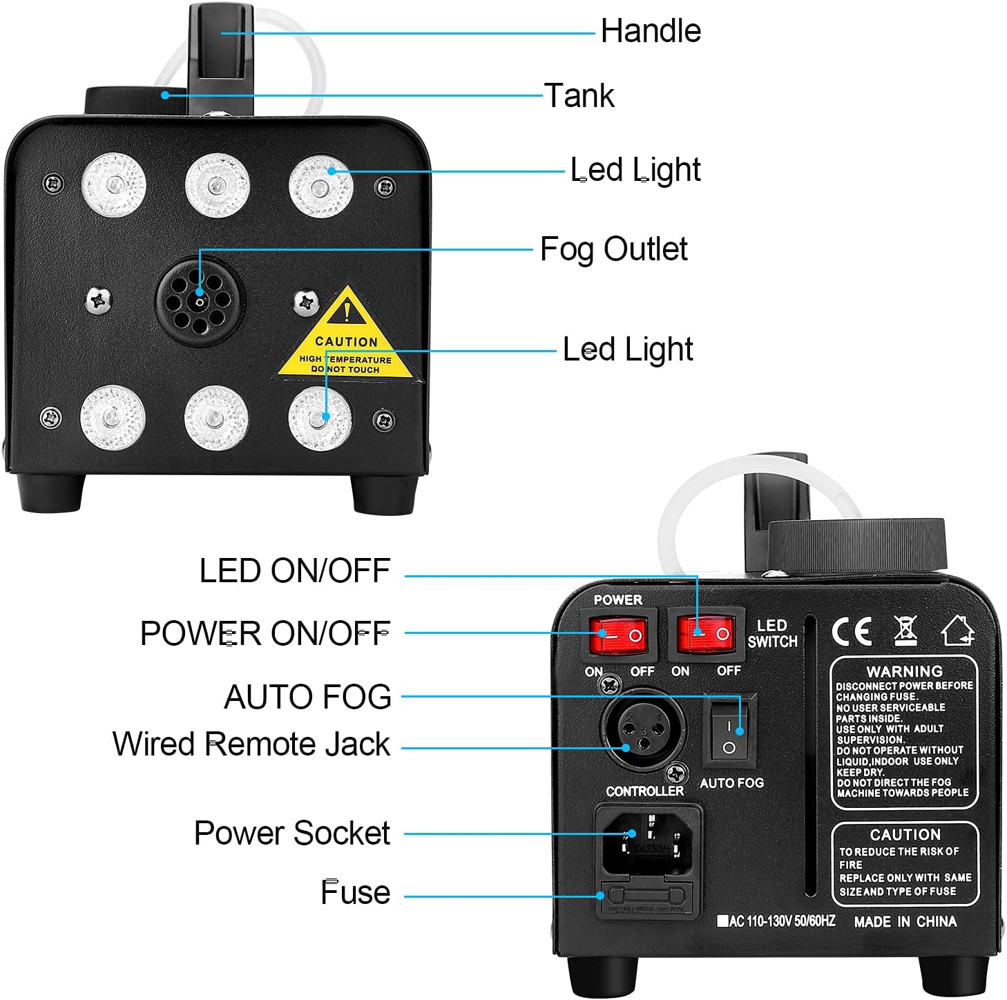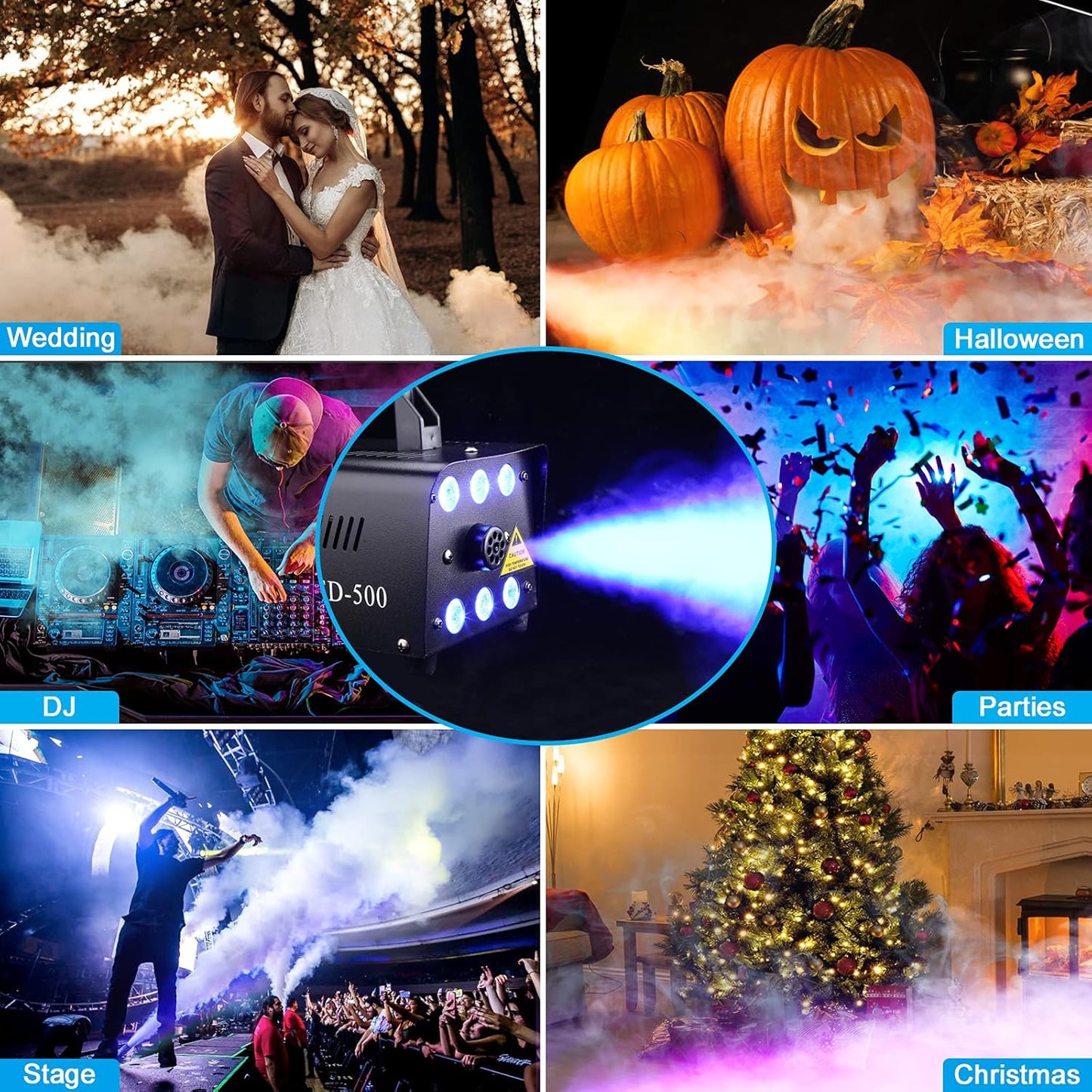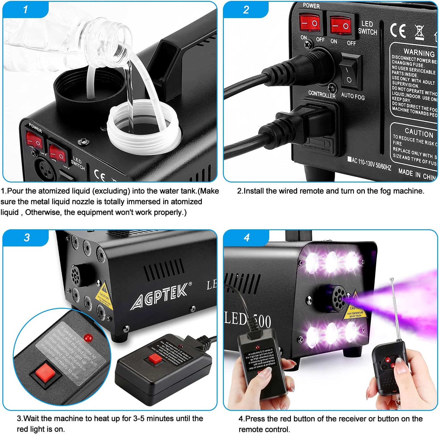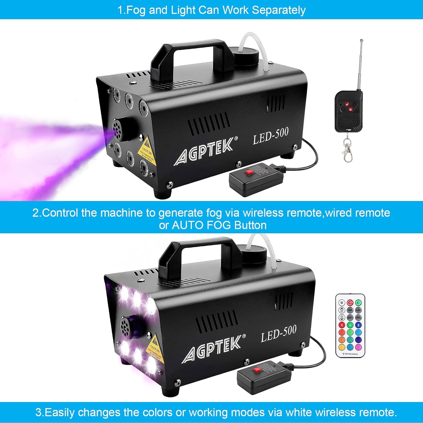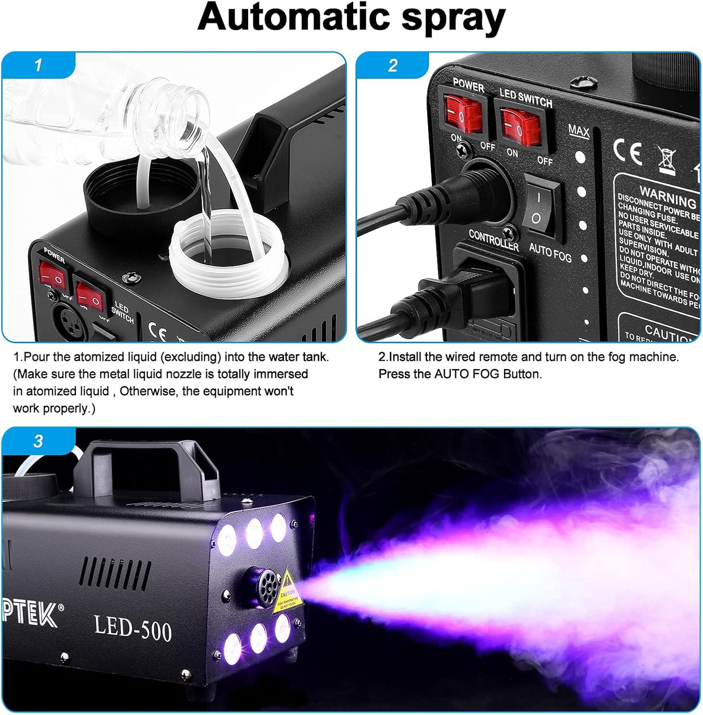 Fog Machine, AGPTEK Automatic Spray Smoke Machine with 6 LED Lights and 13 Colorful LED Light Effects, Great for Halloween, Christmas, Wedding, Parties and DJ Performance