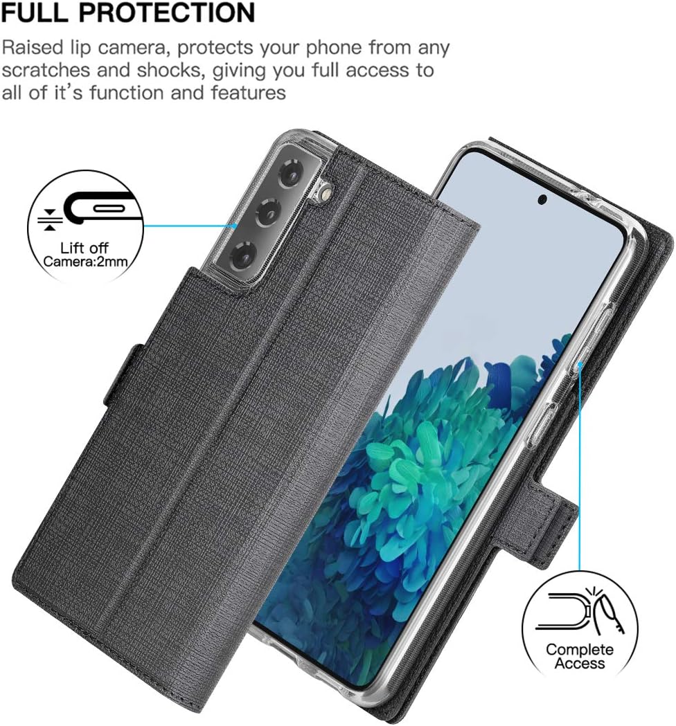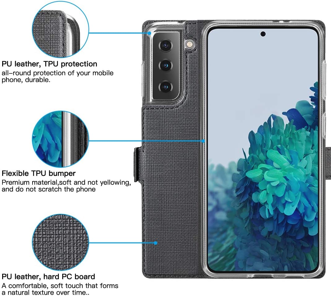 Foluu for Galaxy S21 Plus Case, Flip Folio Wallet Cover Slim Premium PU Leather Case ID Credit Card Slots Stand Kickstand Magnetic Closure TPU Bumper Cover for Samsung Galaxy S21 Plus 2020 (Black)