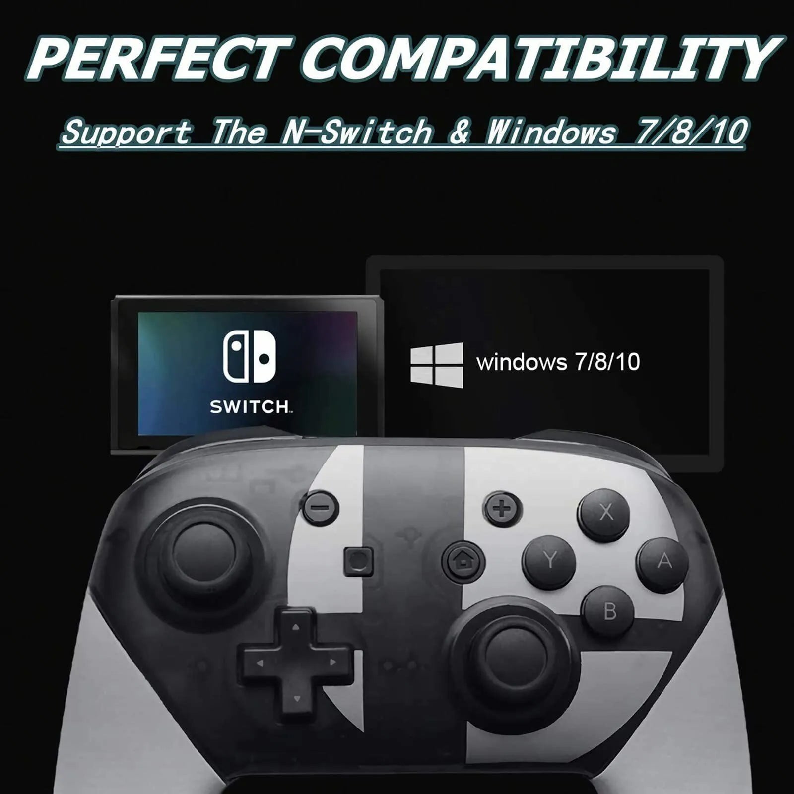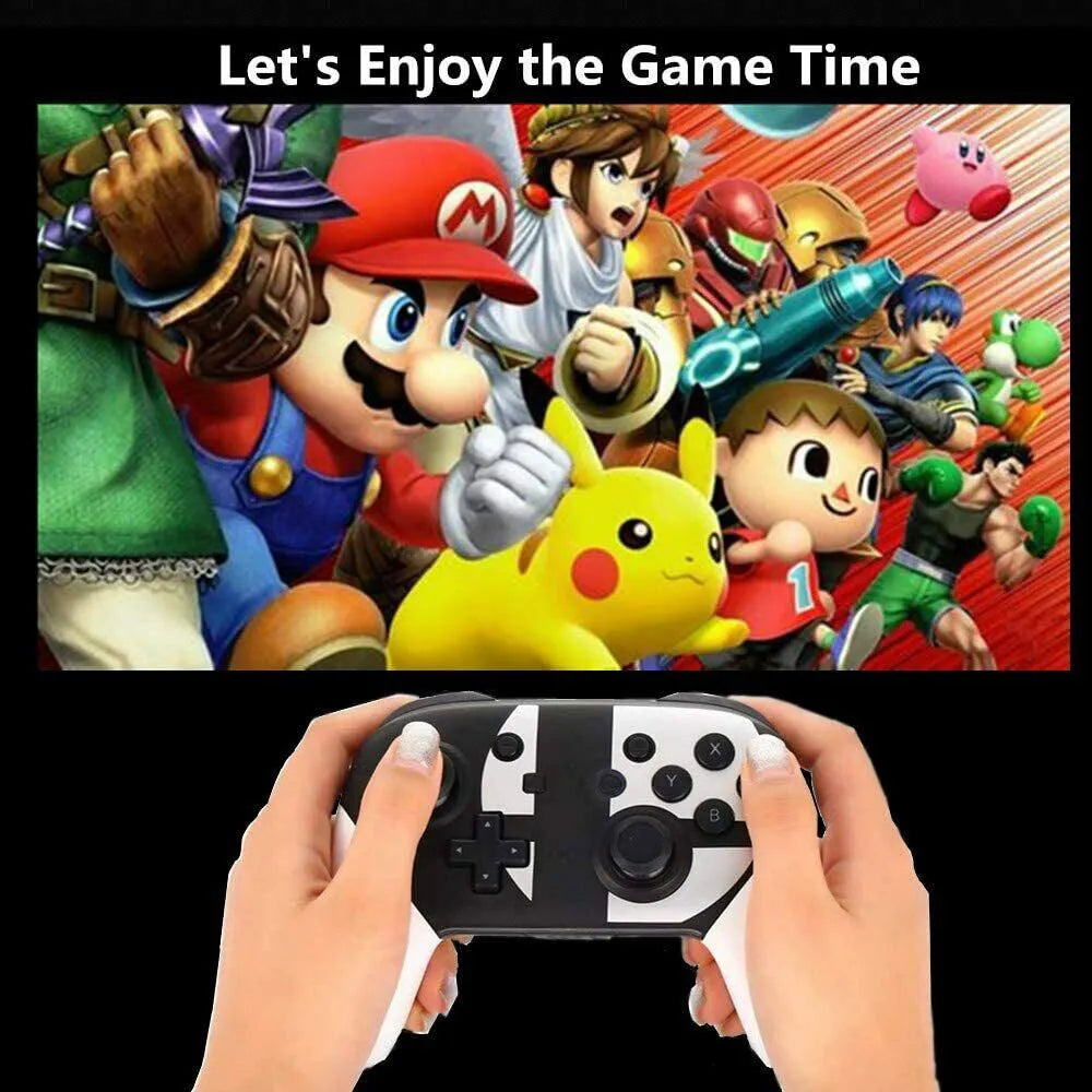 Operating instructions for switch Bluetooth handle: 1. Host settings #1. To connect the Bluetooth handle, the controller connection (Bluetooth) option of the host is on, or turn off flight mode; #2. Select controllers - > change grip / order on the main page to put the host in the status of searching for Bluetooth devices( Loopback (not required) #3 note: if the host is difficult to pair the handle, it may be that too many Bluetooth devices are connected to the host, and the Bluetooth information needs to be cleared manually (system setting - > controllers and sensors - > disconnect controllers); 2. Handle pairing host When the handle is turned off, press and hold the small button next to type USB for 3 seconds to enter the code matching state. The four LEDs are in the state of fast water flow lamp, and the corresponding channel indicator is always on after successful connection. If the synchronization is not successful within 1 minute, it will sleep automatically. If the Bluetooth connection is successful, the indicator LED of the corresponding channel is always on (assigned by the switch host) 3. Handle back to host When the handle is turned off, press any key to wake up the handle. After being woken up, it will automatically connect with the paired host back. If the back connection fails for 6 seconds, it will automatically sleep After the handle is connected successfully, if the handle does not operate, it will enter the sleep state according to the sleep setting of the host system, the host screen will be closed, and the handle will sleep automatically 4. Low voltage alarm If the lithium battery voltage is lower than 3.55v ± 0.1V, the current channel lamp flash indicates that the voltage is low; If the lithium battery voltage is lower than 3.45v ± 0.1V, it will sleep automatically; 5. Handle test Key test: system setting - > controllers and sensors - > test input devices 3D test: system setting - > controllers and sensors - > calibrate control sticks 6. Reset test Press the small button next to type USB to close the handle; 7. Use distance Barrier free operation is about 8-10m. The package includes: 1 * switch controller 1 * 1.2m charging line 1 * instructions |