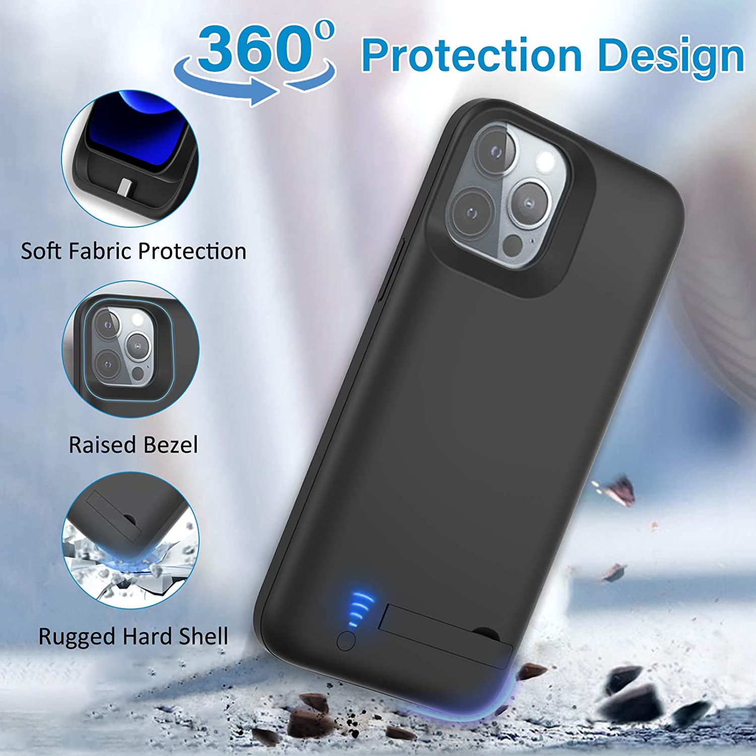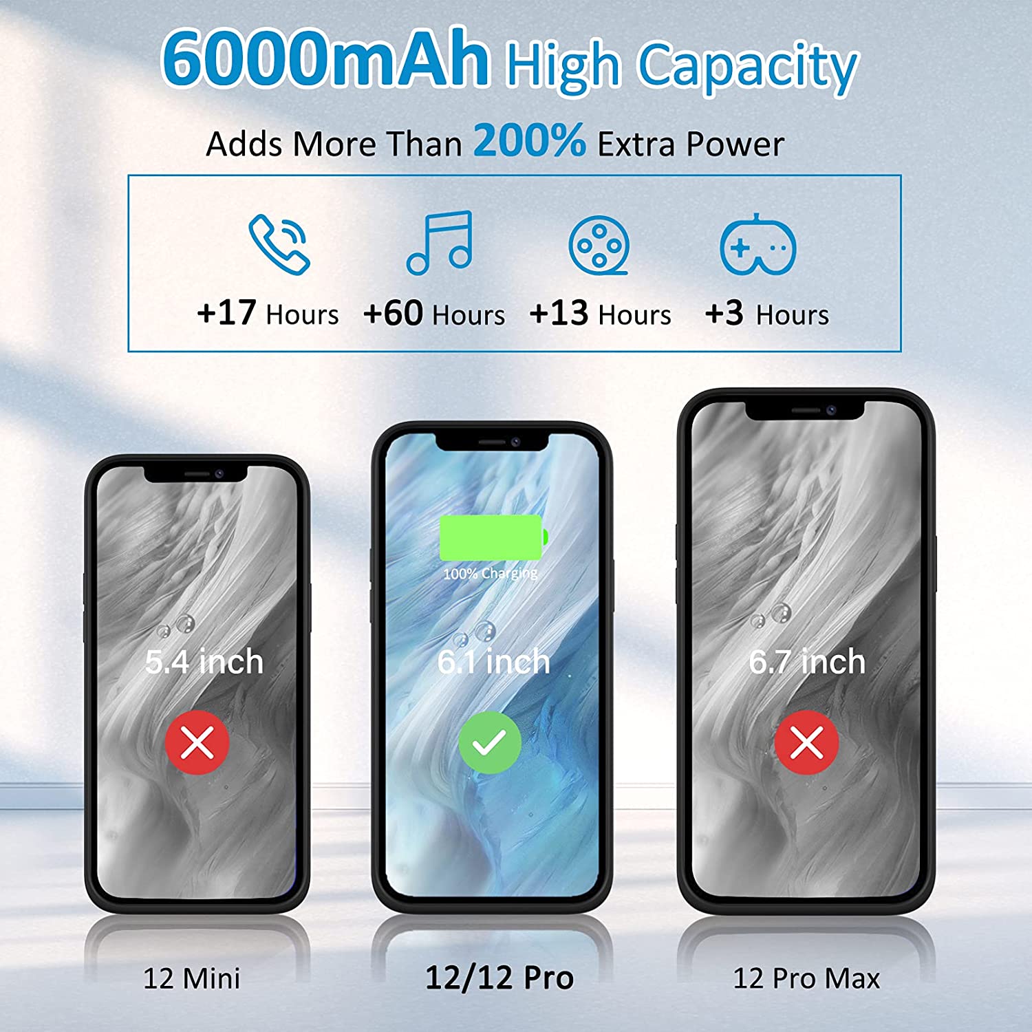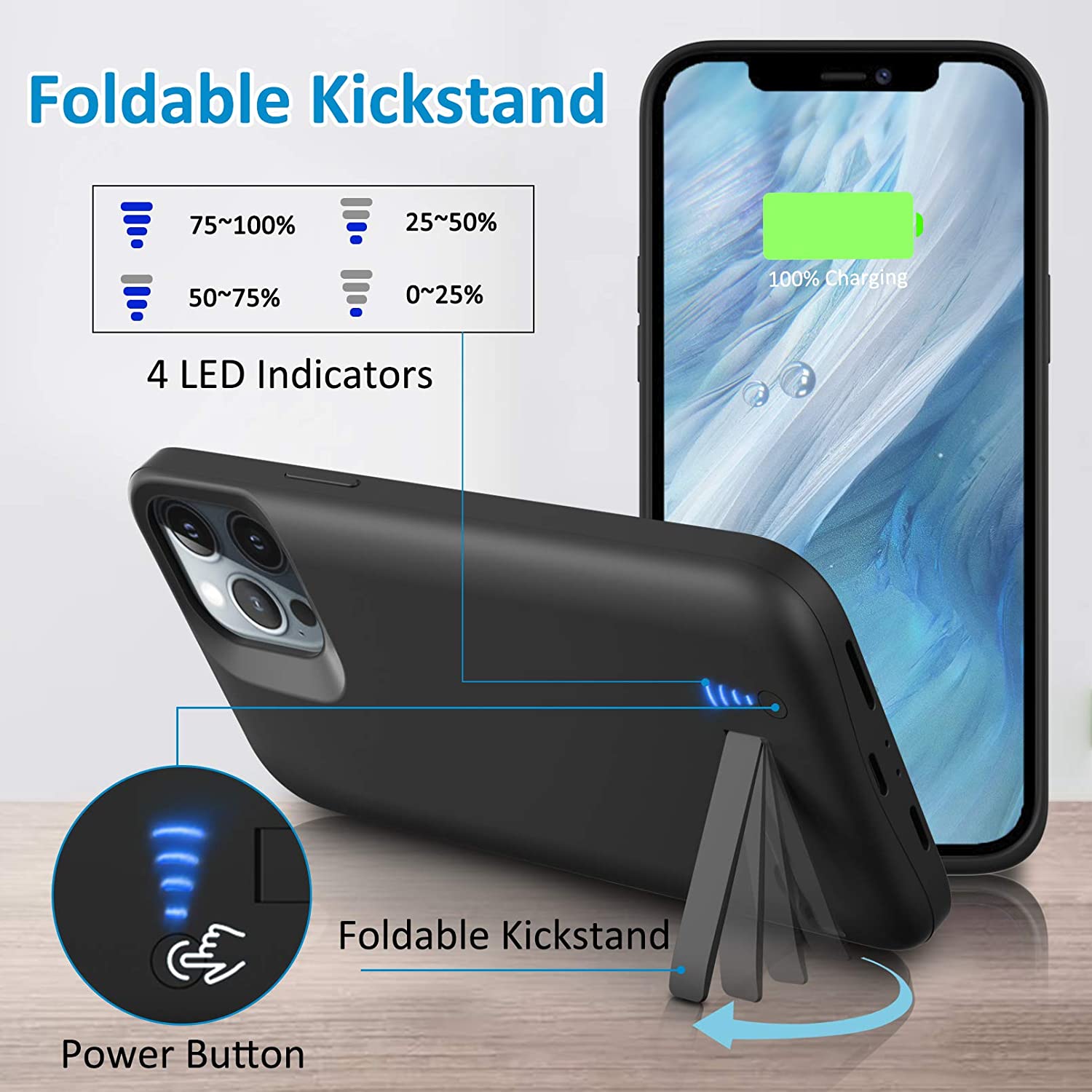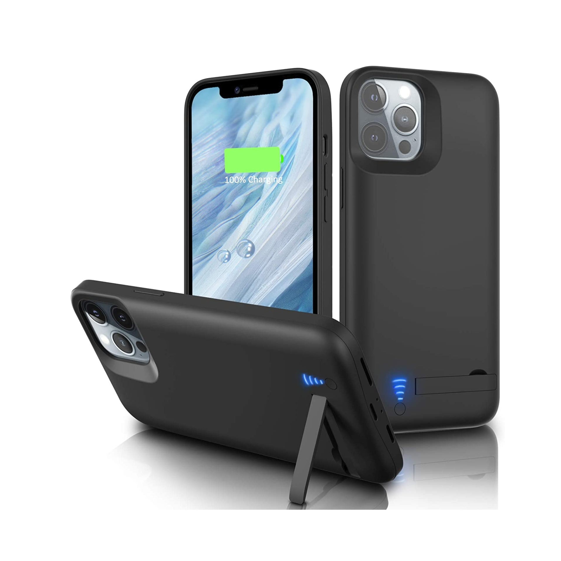 Gladgogo Battery Case for iPhone 12/12 Pro, 6000mAh Portable Charging Case with Kickstand, Carplay Supported Rechargable Battery Pack for Apple 12/12 Pro Backup Charger Case (6.1 inch)-Black