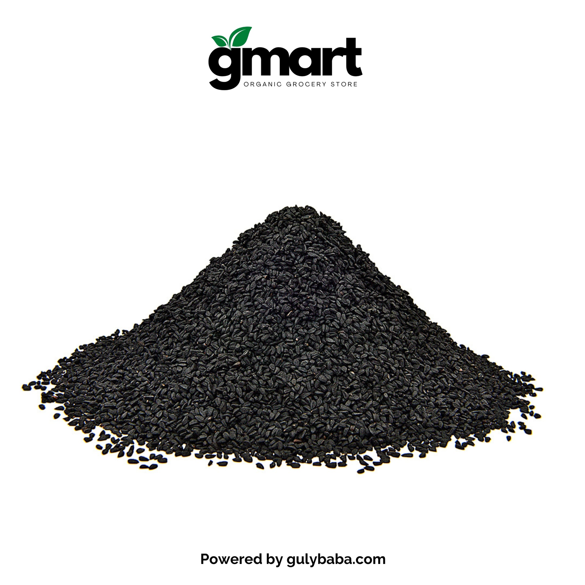 - Small, black, aromatic seeds of Nigella sativa plant with nutty, slightly bitter flavor.