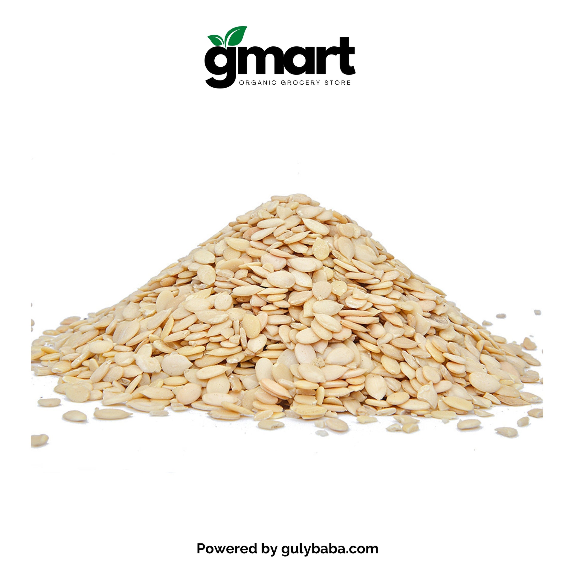 - Dried, roasted seeds of Cucumis melo plant with nutty, slightly sweet flavor.