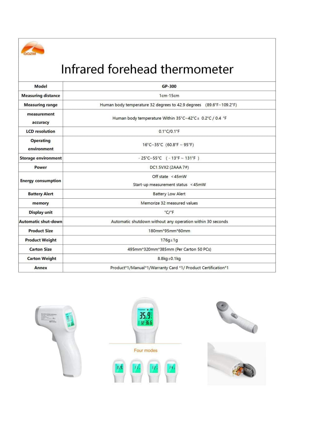 GP-300 Contactless Infrared Accurate Instant Reading Thermometer
