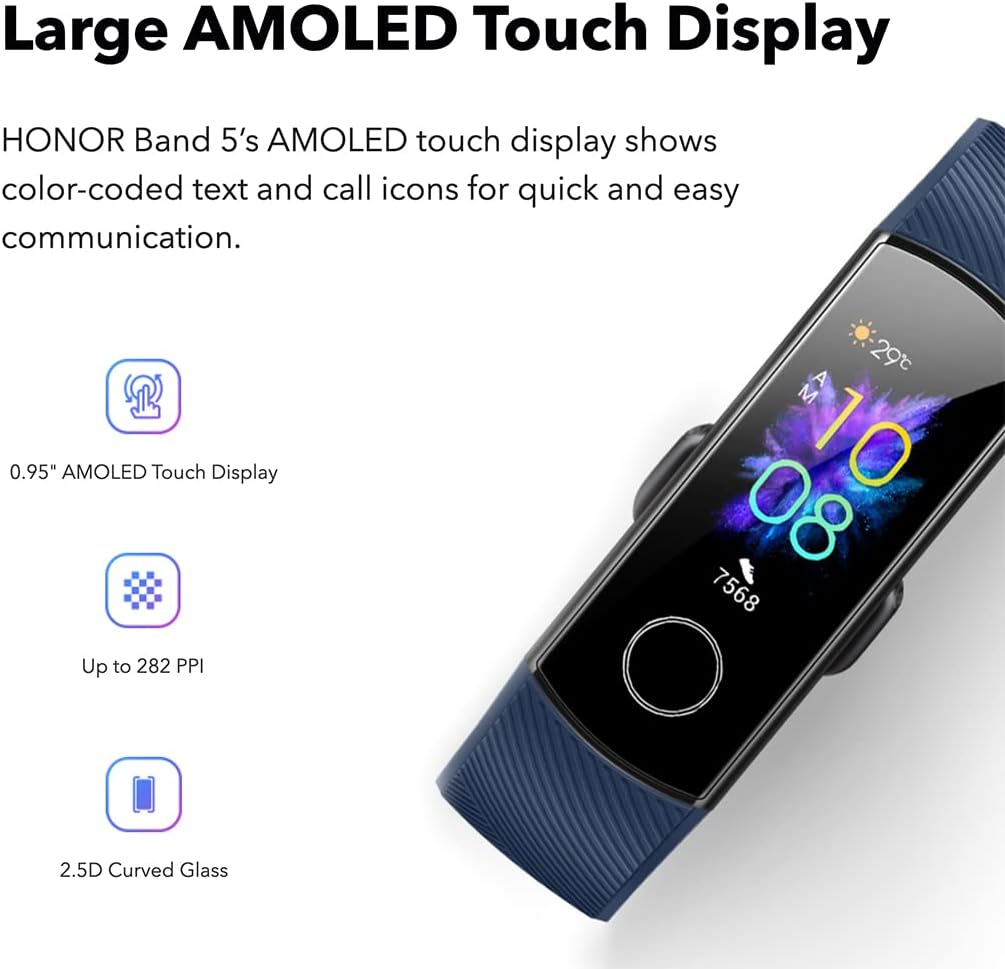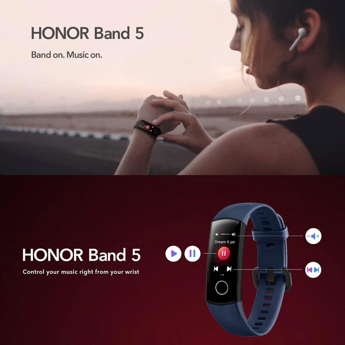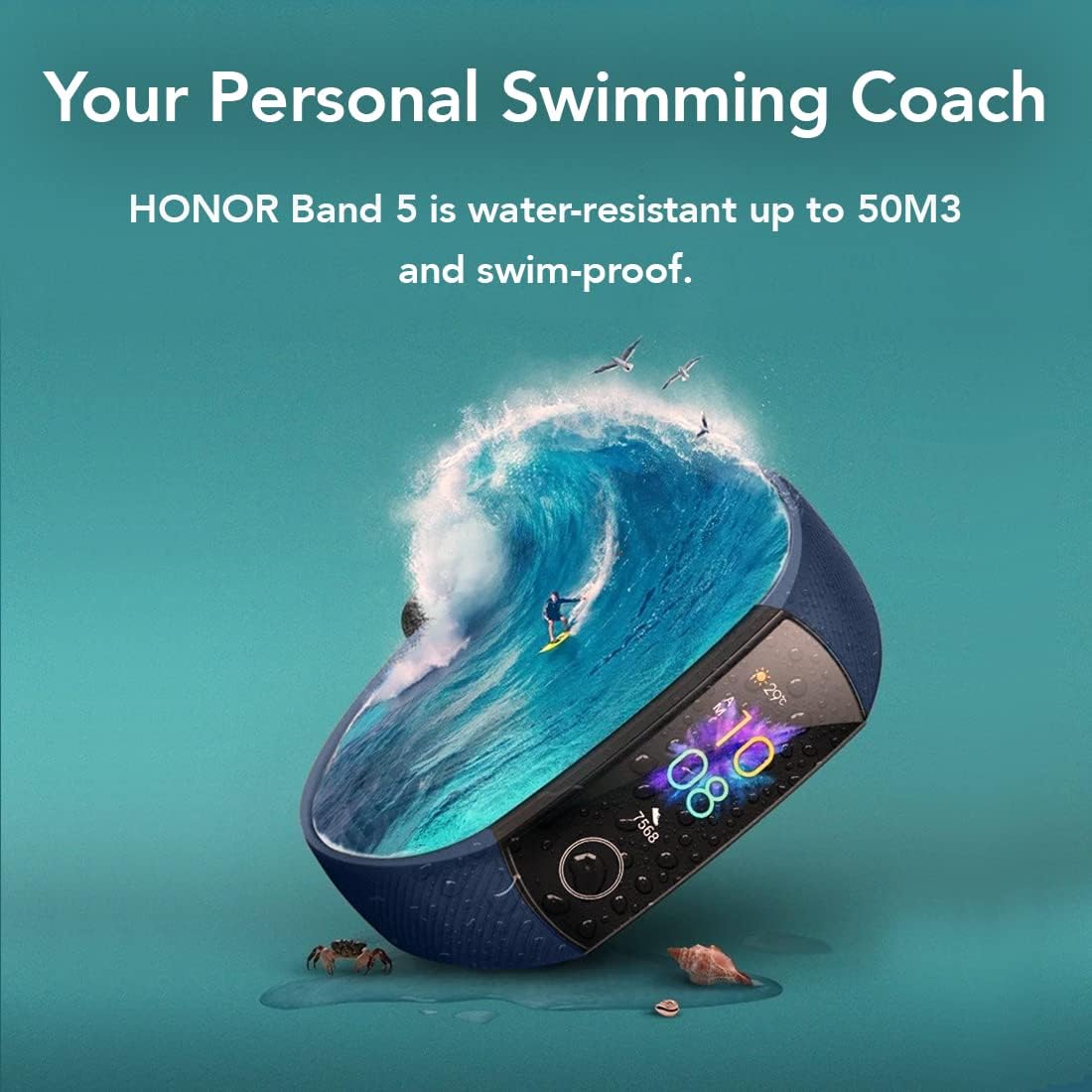 HONOR Band 5 Smart Wristband/Fitness Tracker with Heartrate Monitor, Blood Oxygen Sensor, Calorie Tracker, Sleep Tracking and Full Colour Touch Screen – Water Resistant up to 50m