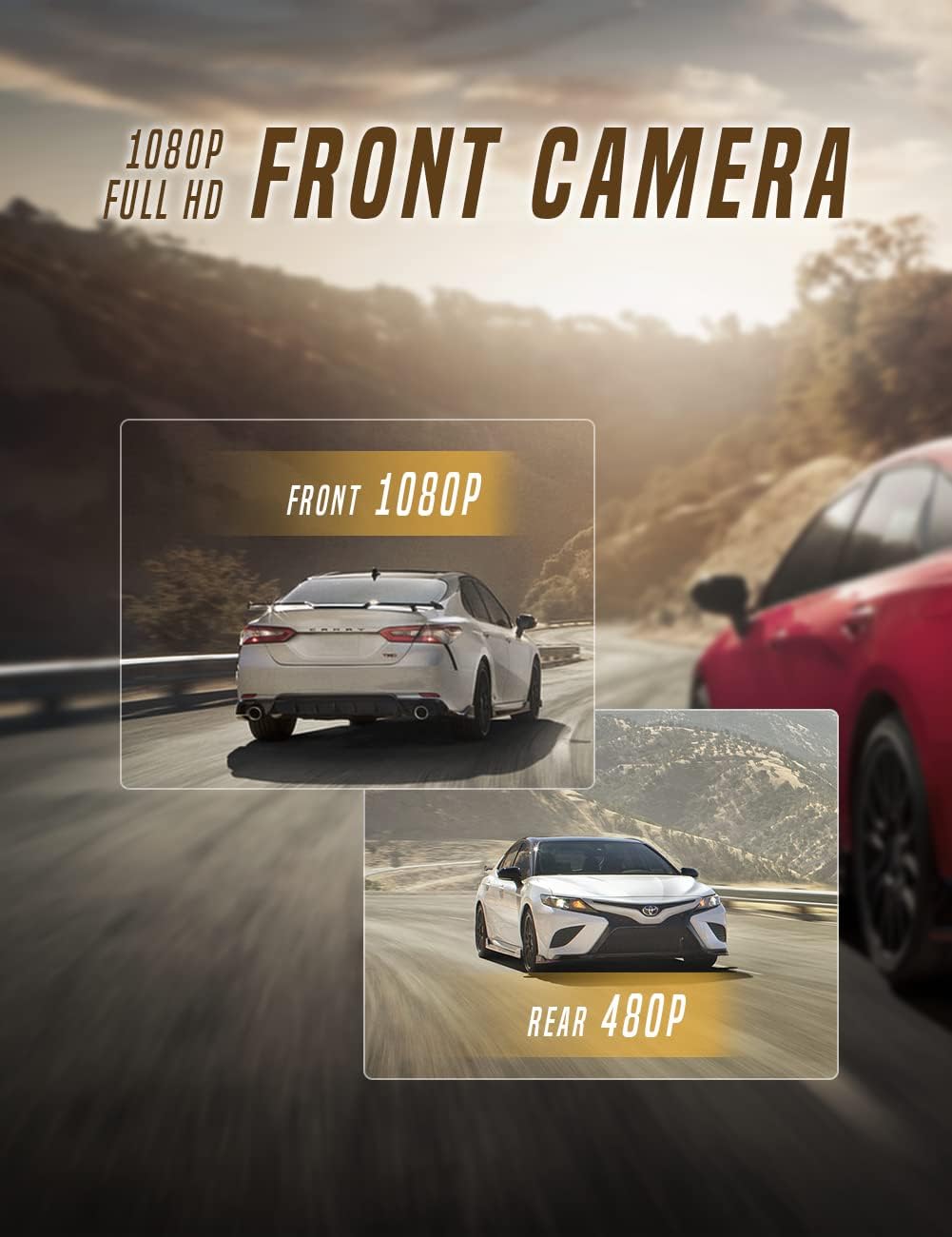 - Front Rear Dual Car Camera: DC05 model has a unique compact size, goes virtually unnoticed on the windshield, won't affect your sight of driving. Dual cameras automatically start recording at front 1920x1080p and rear VGA resolution when you turn on the engine, provide double protection for you (rear view camera is waterproof).