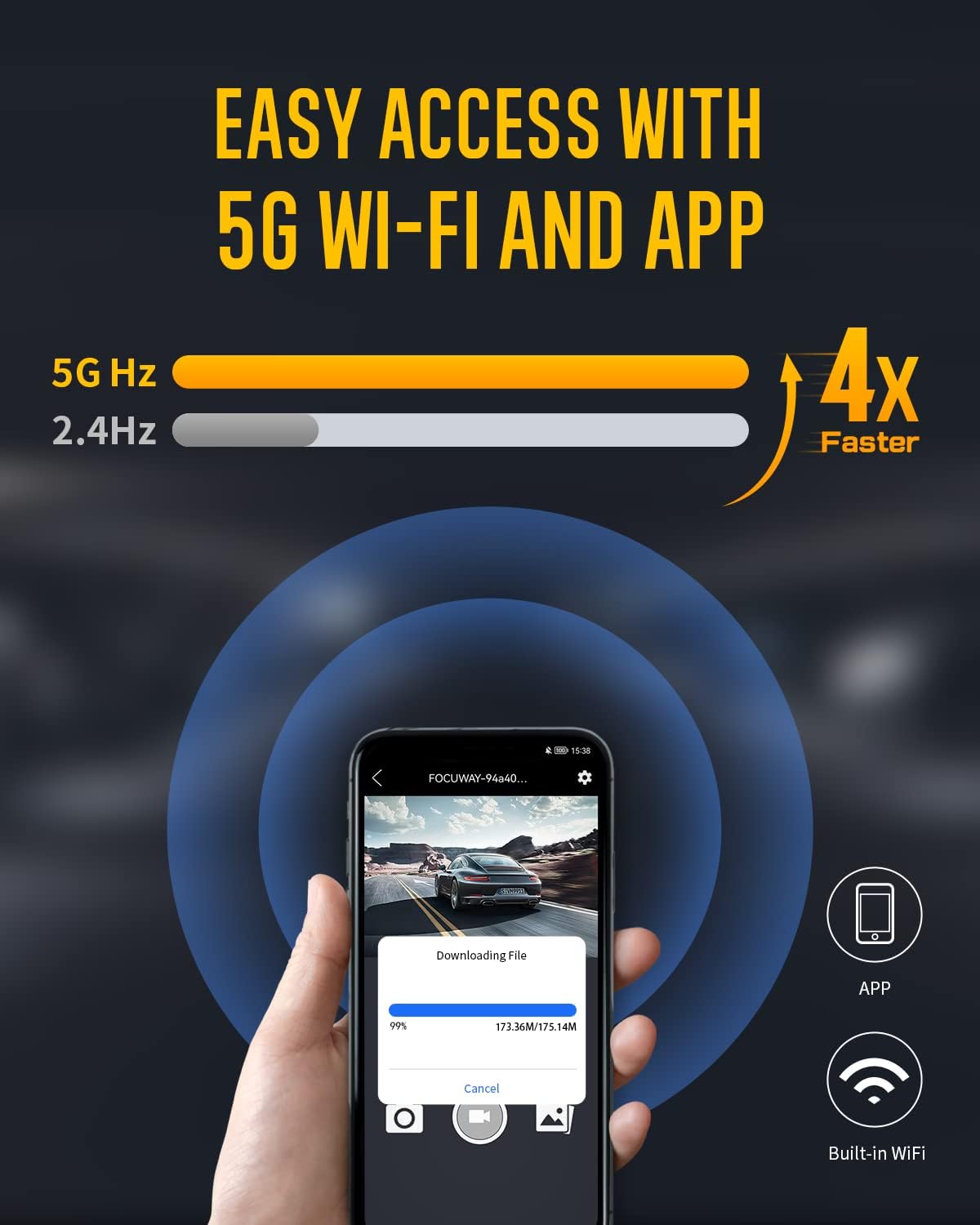 IIWEY EY02 4K Dash Cam Front and Rear Built-in 5GHz WiFi, Dual Dash Cam Front 4K Rear 1080P Car Camera, Free 64GB SD Card, Super Night Vision, App Control, Supercapacitor, Parking Mode, USB C Port