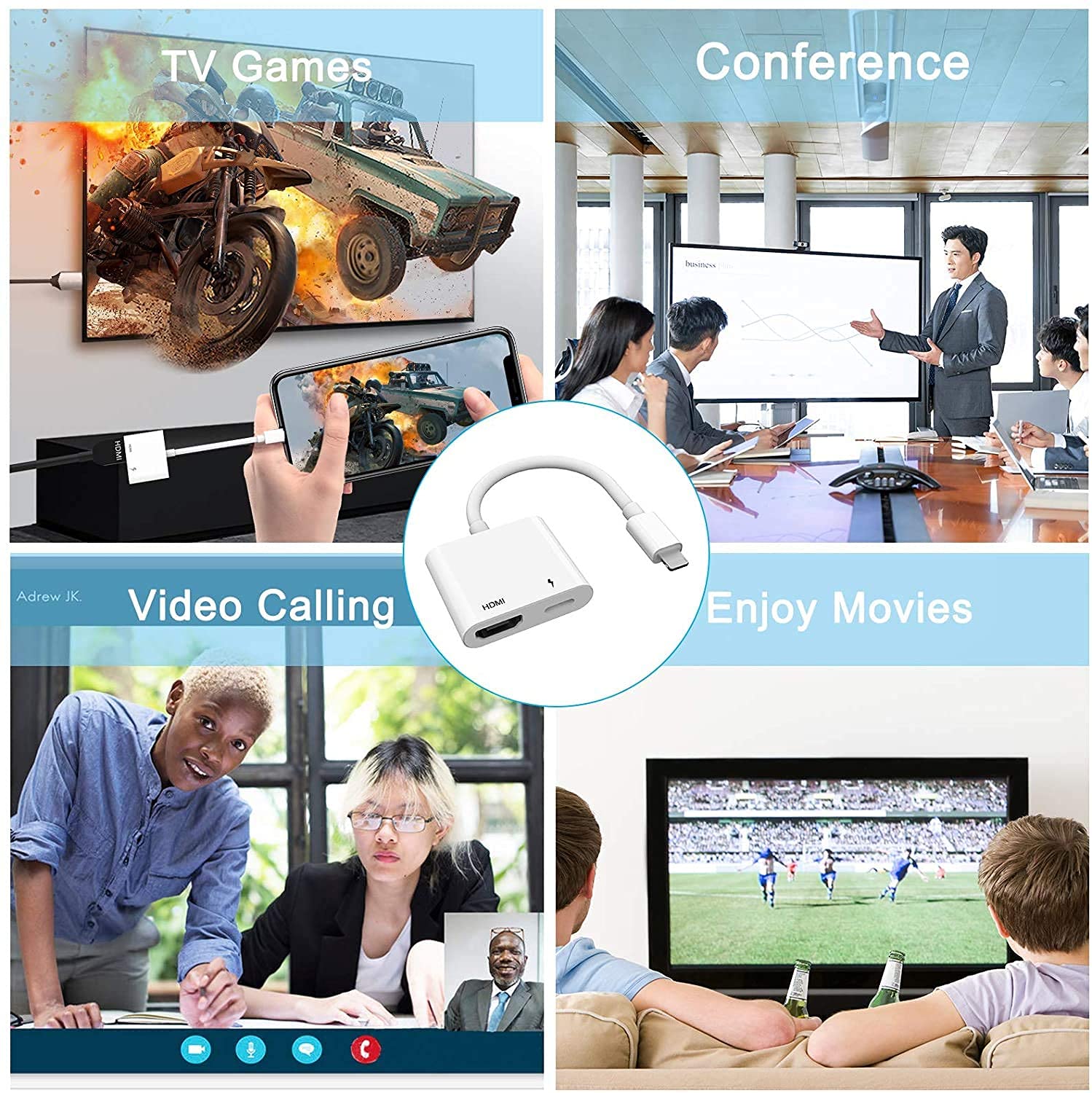 Lightning to HDMI Adapter for iPhone iPad, Apple MFi Certified 1080P Lightning to Digital AV Adapter Sync Screen Converter with Charging Port for iPhone iPad HDMI Converter to HD TV Projector Monitor