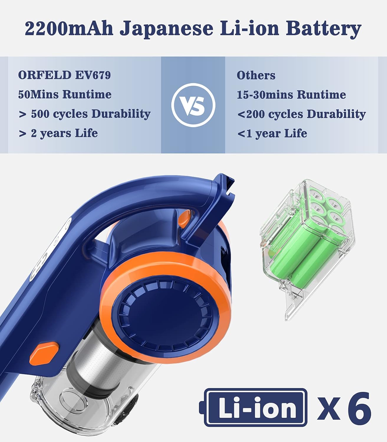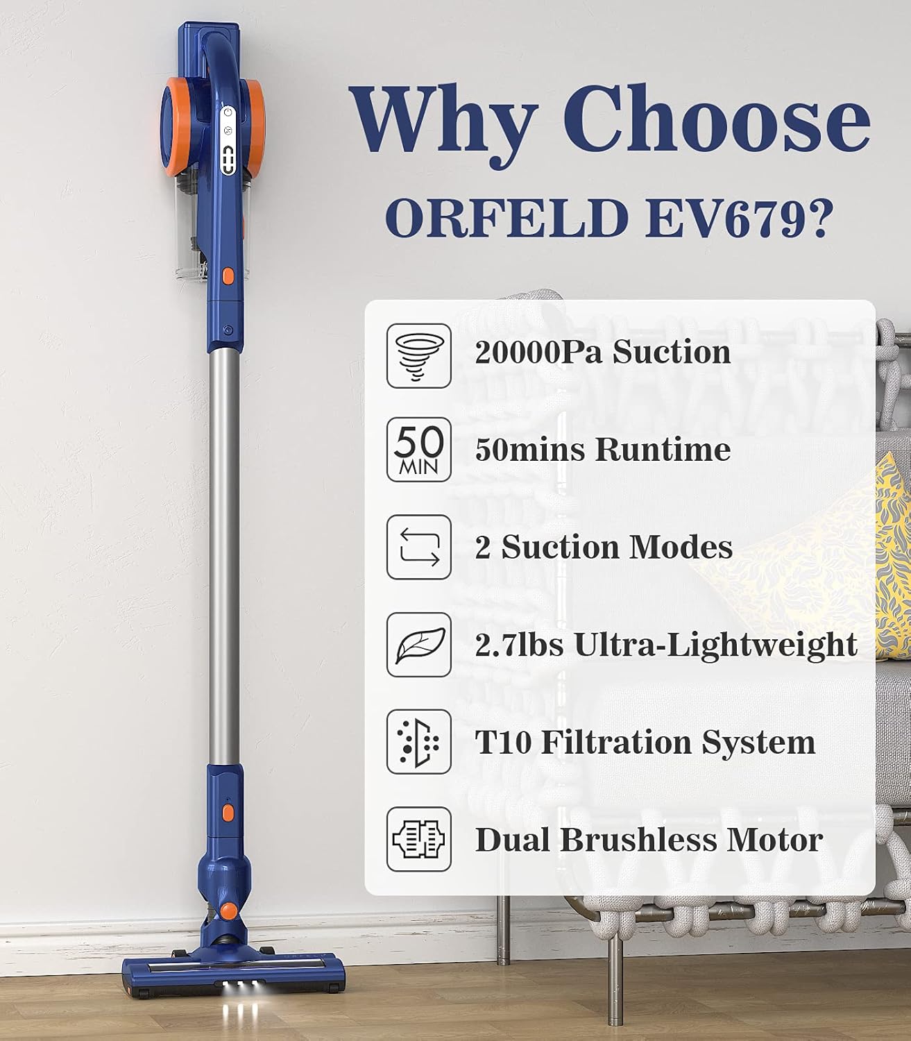 Like A New ORFELD Cordless Vacuum Cleaner, 20000Pa Stick Vacuum 4 in 1, Lightweight, Up to 50 Minutes Runtime, with Dual Digital Motor for Deep Clean Whole House, EV679
