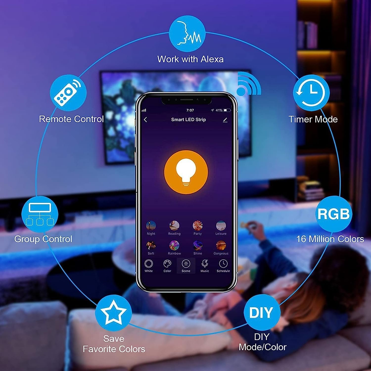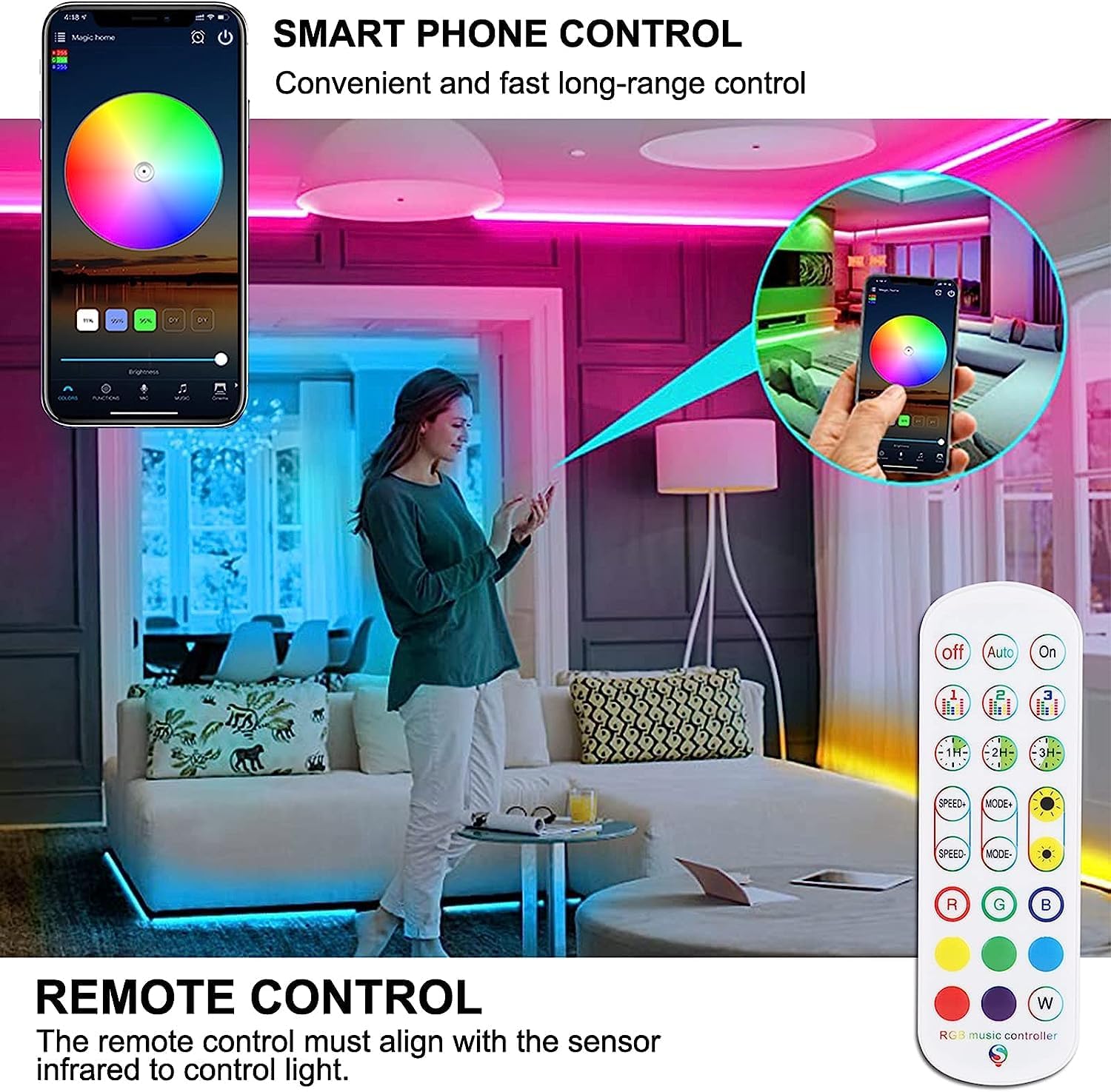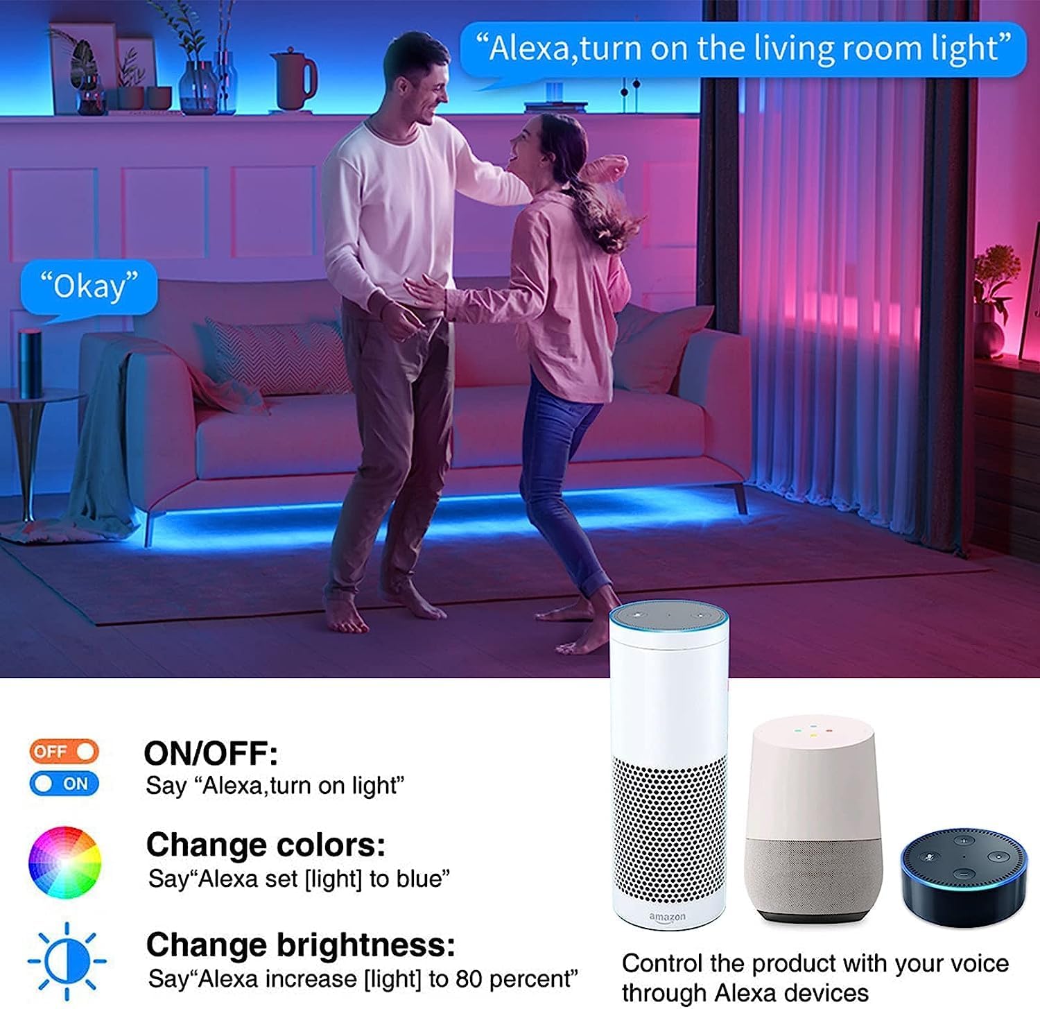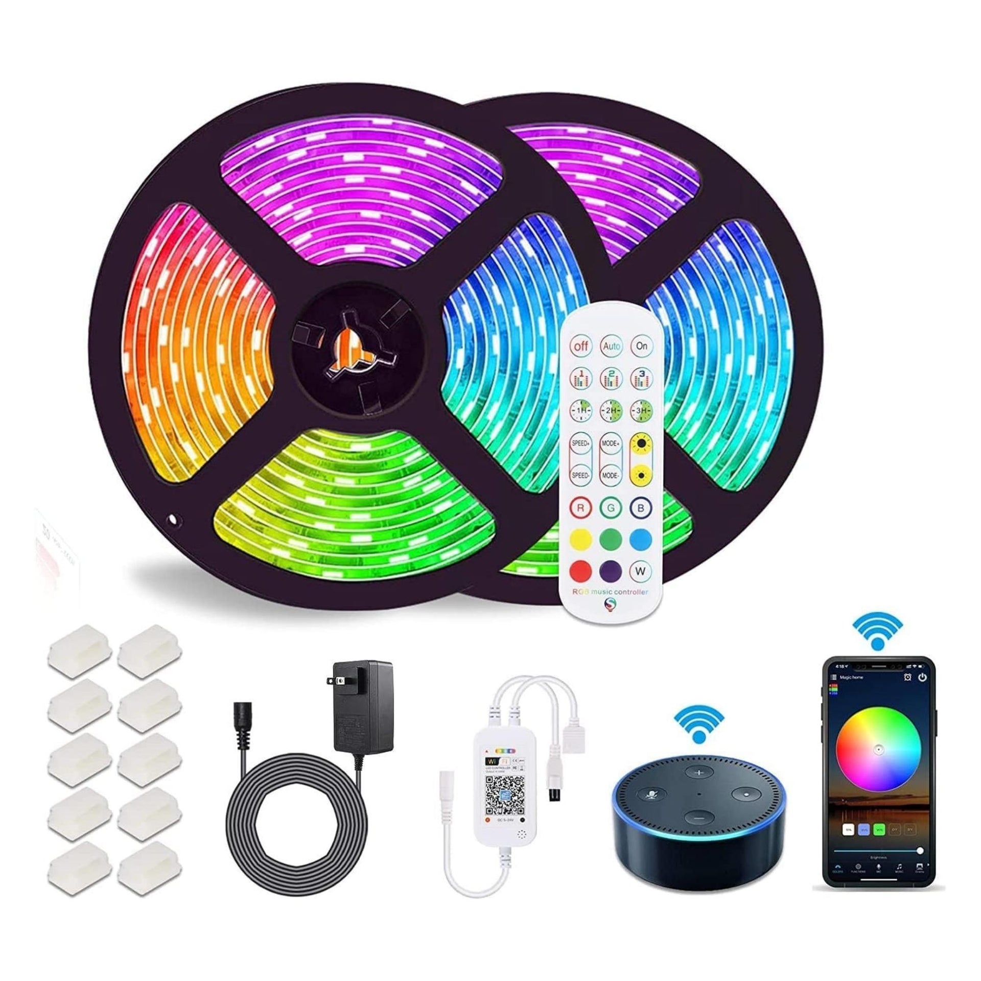 LUXONIC 32.8ft Waterproof LED Light Strips, WiFi LED Lights Work with Alexa and Google Assistant, Super Bright 5050 Color Changing LEDs with App Control, Music Sync Strip Lights for Bedroom, Party