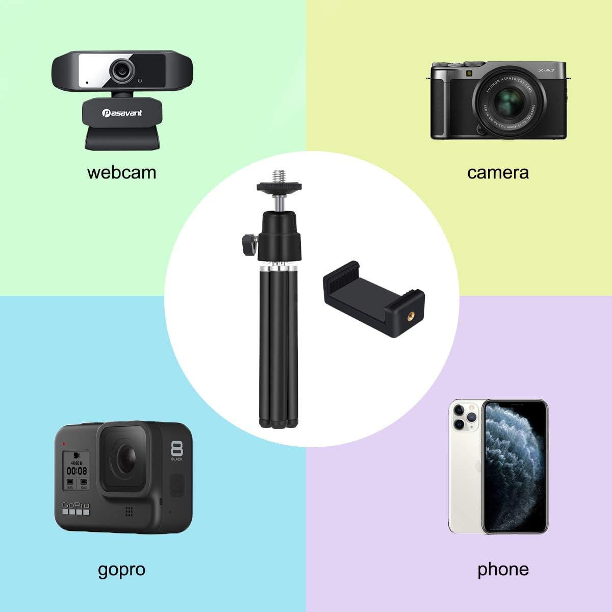 Lightweight Mini Webcam Tripod for Smartphone/Web Camera with Cell Phone Mount Holder Table Stand for DSLR Cameras Compatible with iPhone & Android Phone