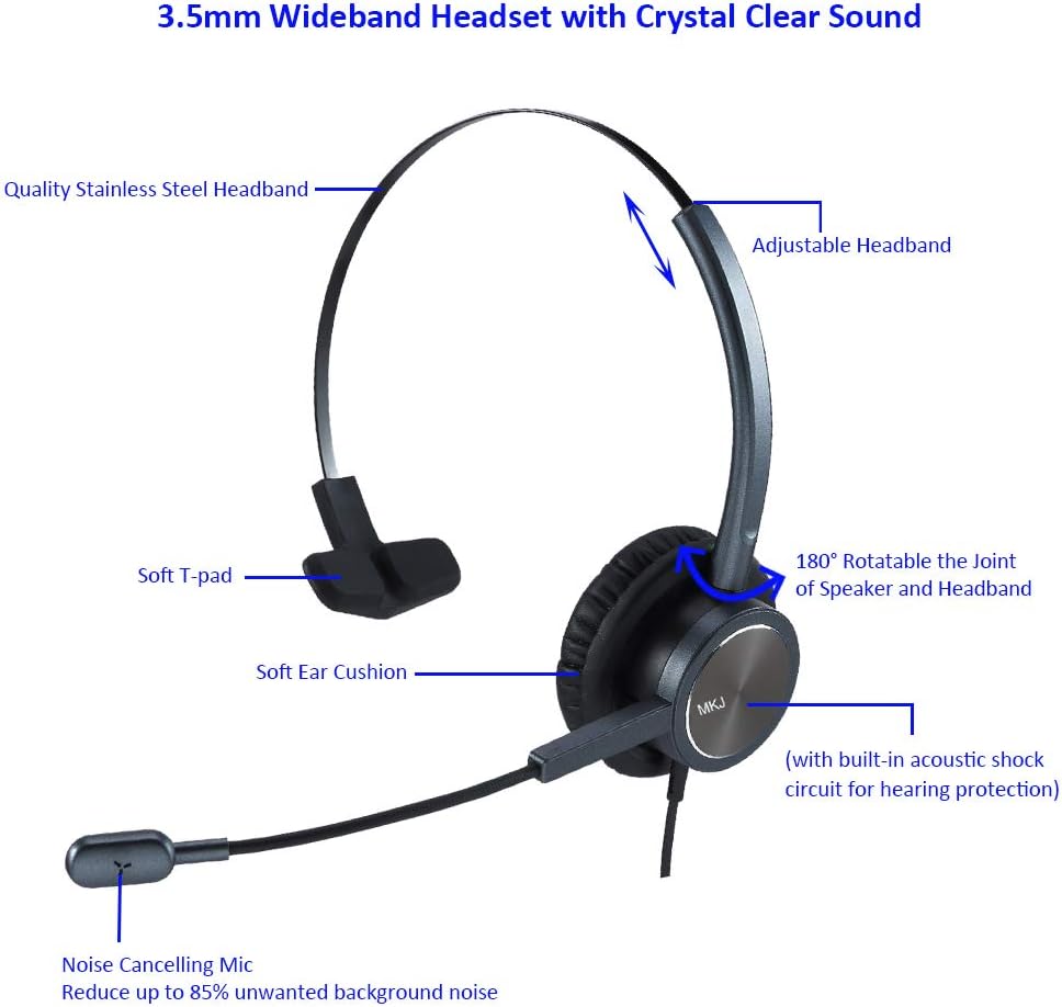 MKJ Corded 3.5mm Headset with Noise Cancelling Microphone Cell Phone Headset for Smartphones Huawei HTC ZTE BlackBerry LG Tablets Laptops 3.5mm Headphones for Skype Conference Calls Zoom Meetings