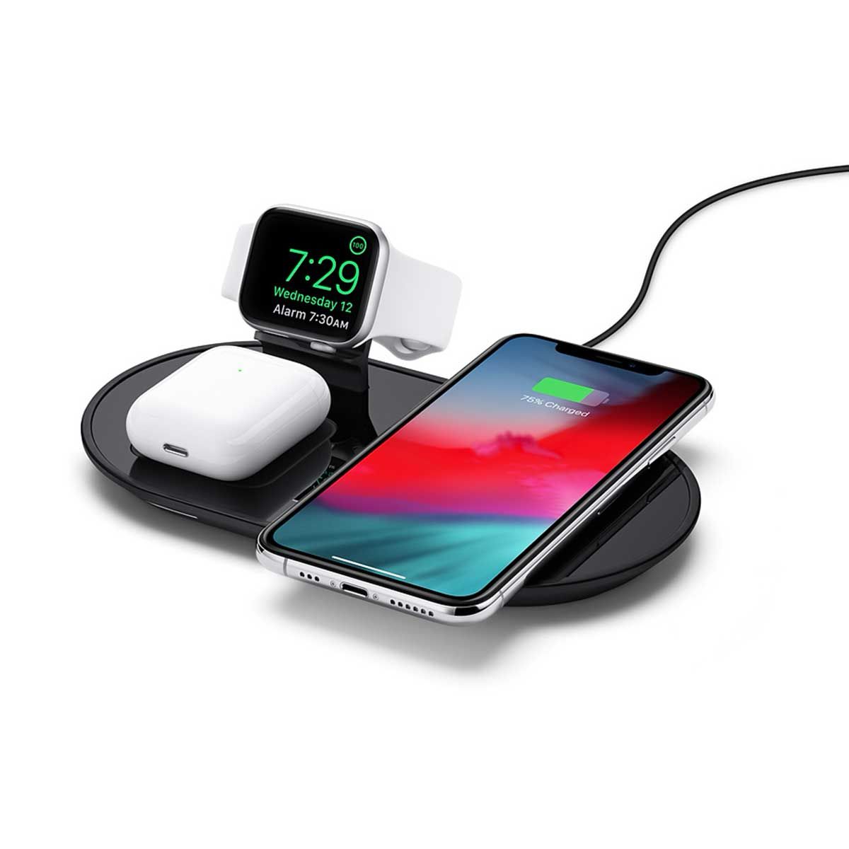Mophie 3 in 1 Wireless Charge Pad - Qi Wireless 7.5W Charging Pad for Apple iPhone, Airpods, and Apple Watch - Polished Black