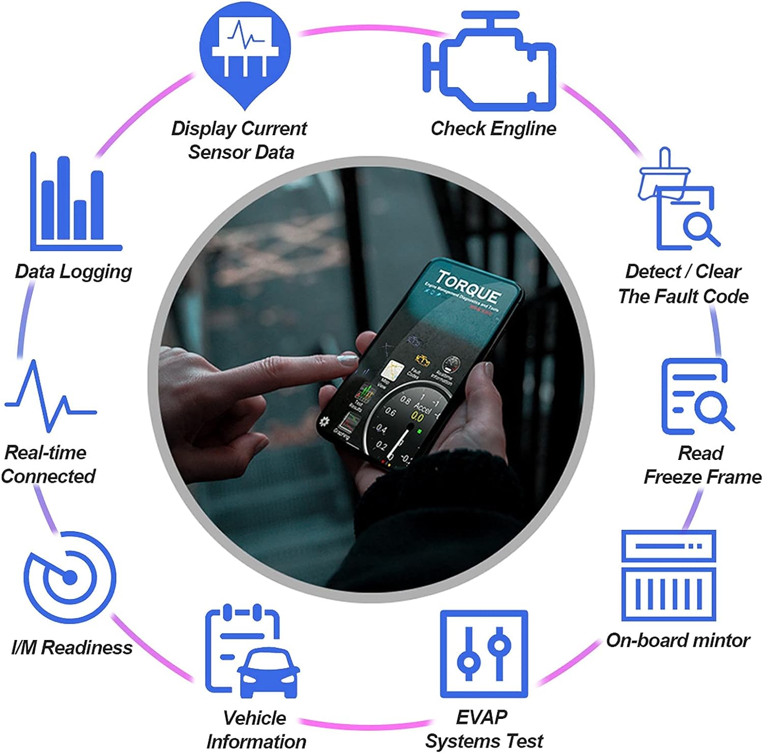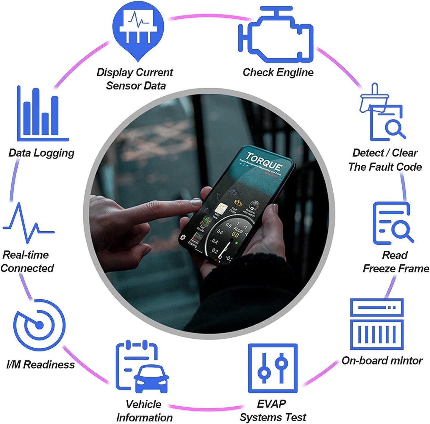 - Works on All 1996 and Newer Vehicles & Small trucks which are All OBD-II Protocols. Easily read & clear Check Engine Light(CEL), show live sensor data on your Phone, such as O2 Sensors,Throttle Position, Coolant Temperature,Fuel Trim, Air Fuel Ratio, DPF Temp, Oil Temp, Fuel Pressure,Vehicle Speed & so much more!Prepare smog test, helps you fix the Car problem quickly and exactly.