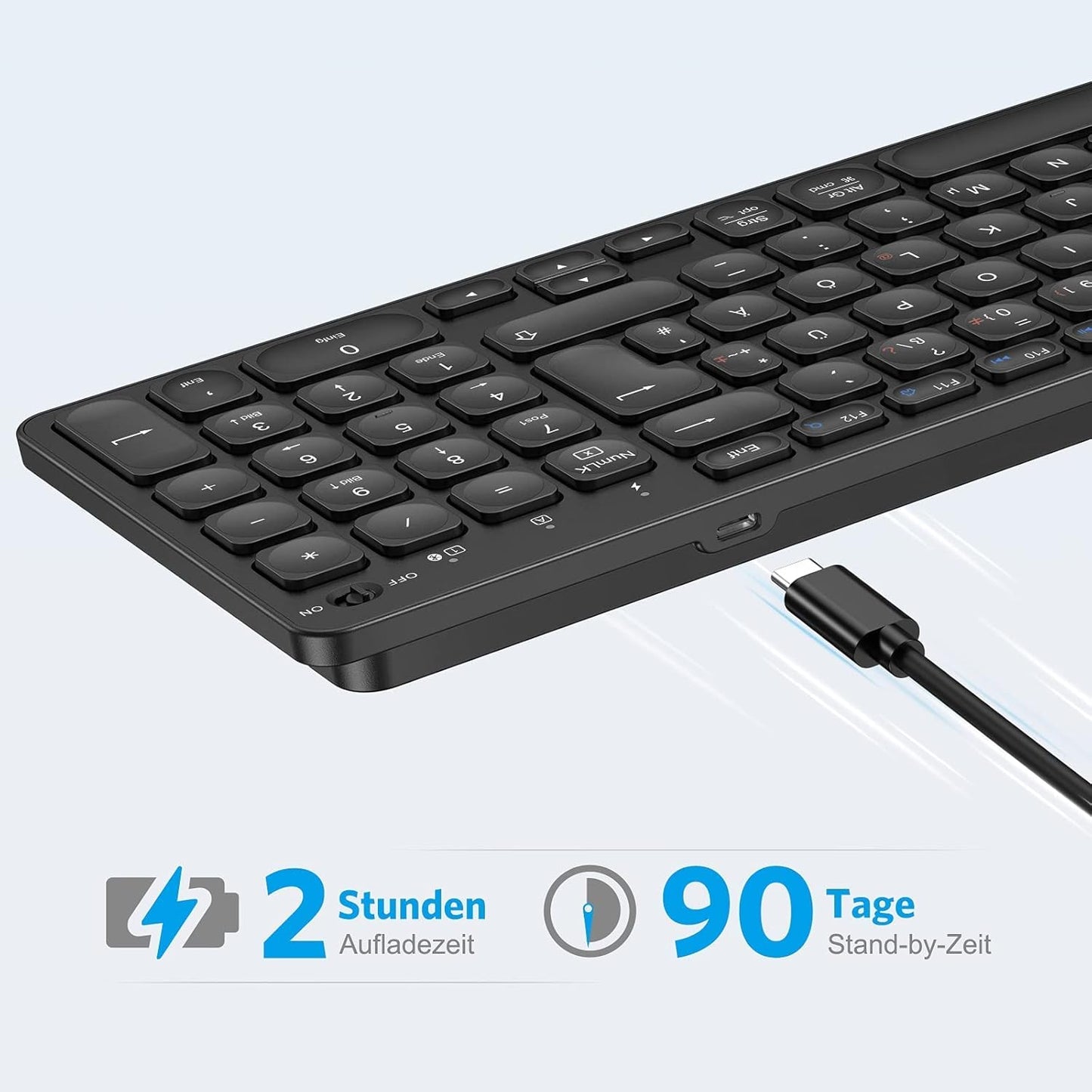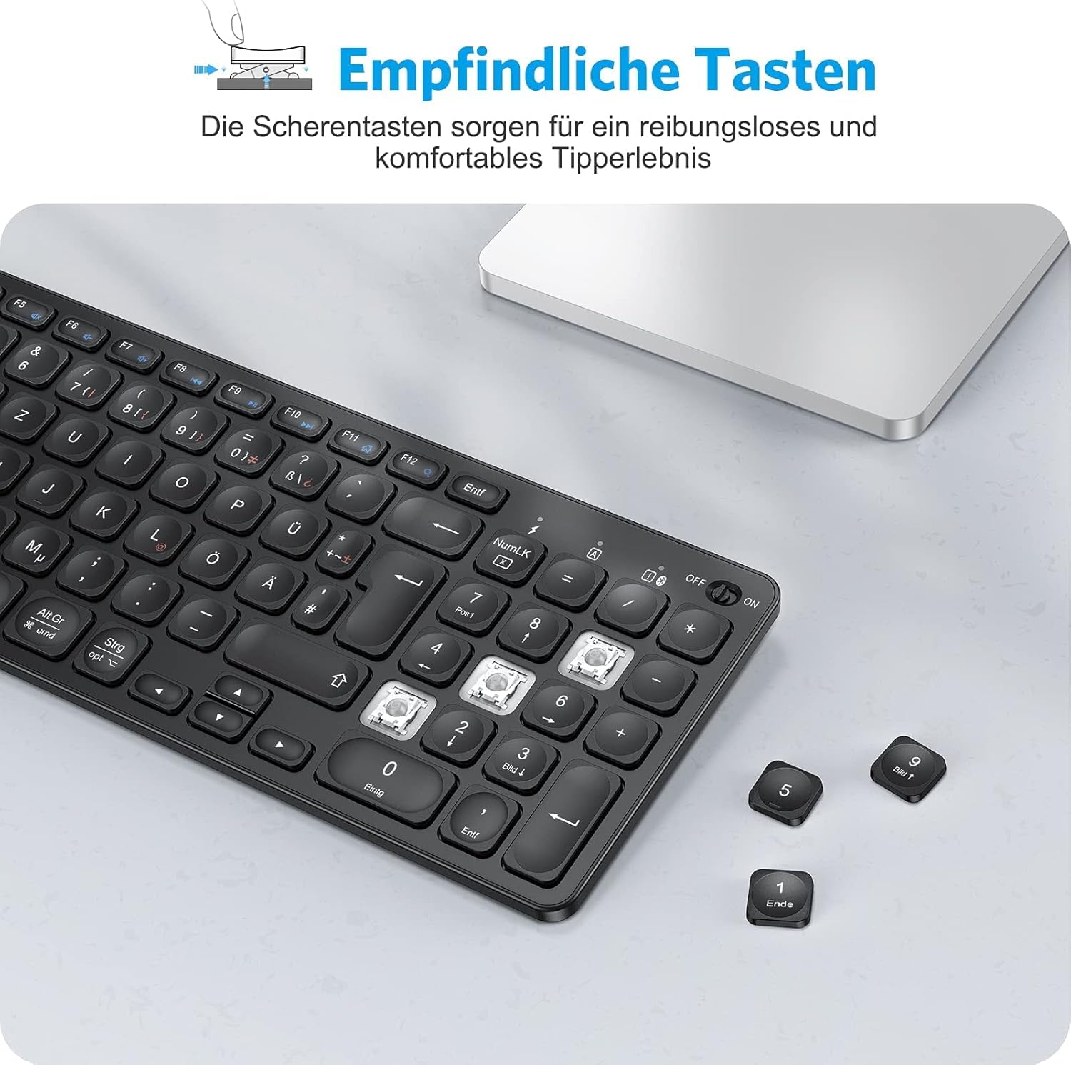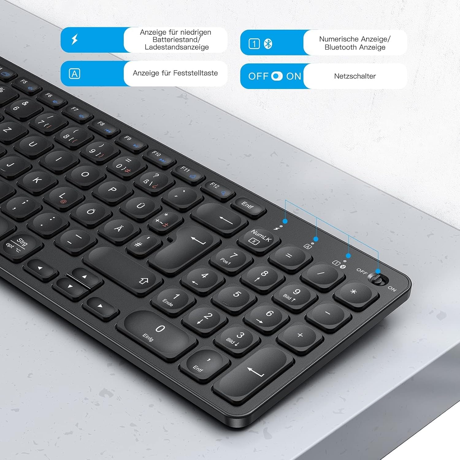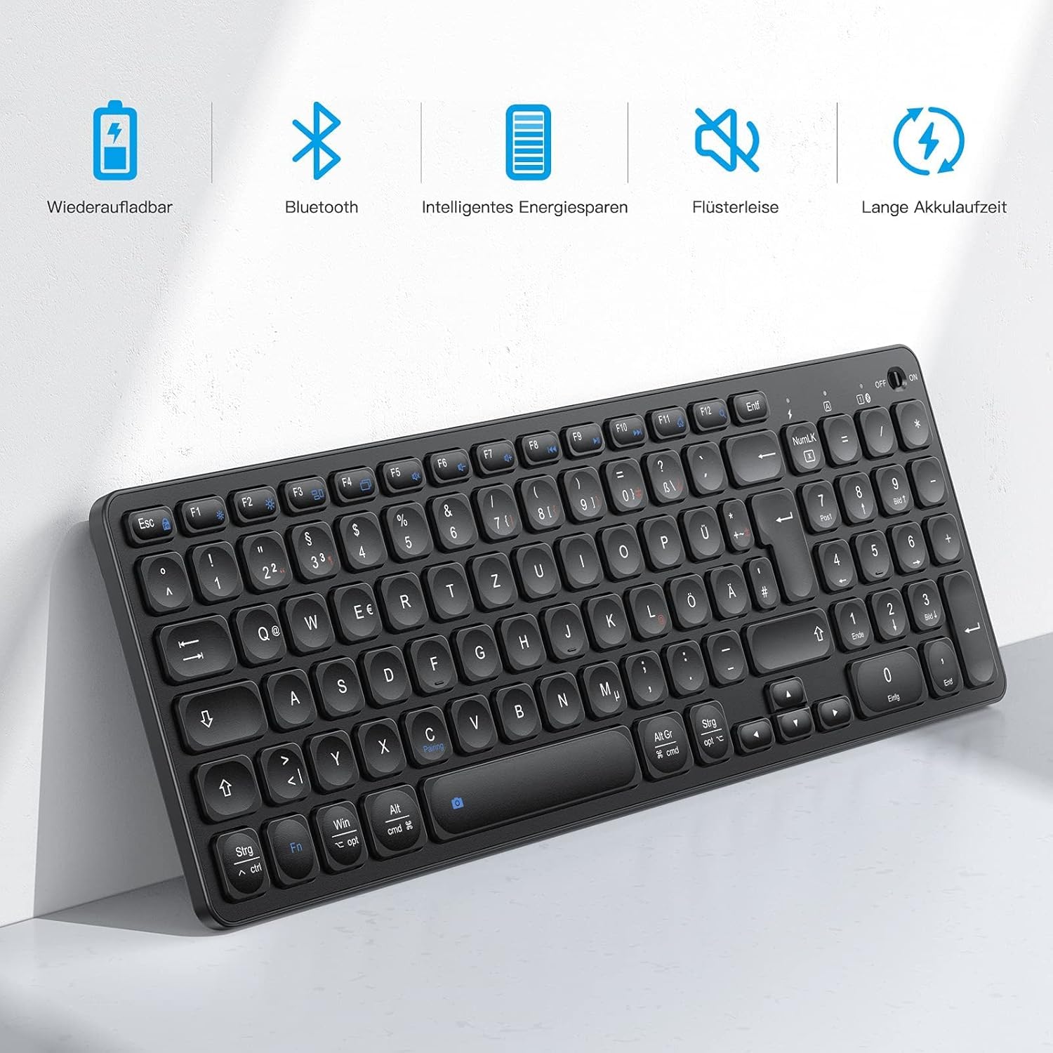 OMOTON Rechargeable Bluetooth Keyboard for MacOS and Windows, Wireless Keyboard for MacBook/MacBook Air/MacBook Pro/iMac/iMac Pro/Mac Pro and Laptop, QWERTZ DE Layout, Business Style, Black