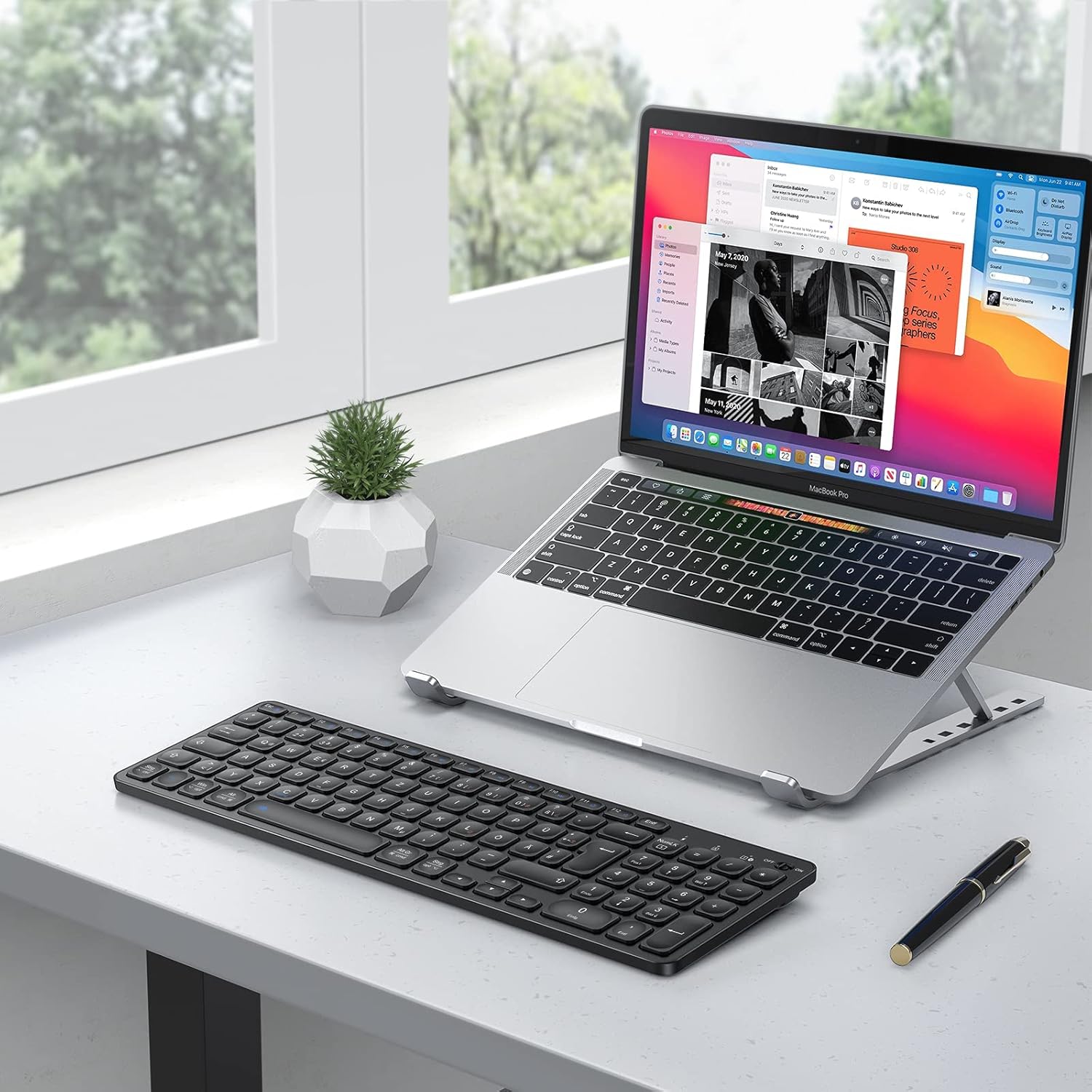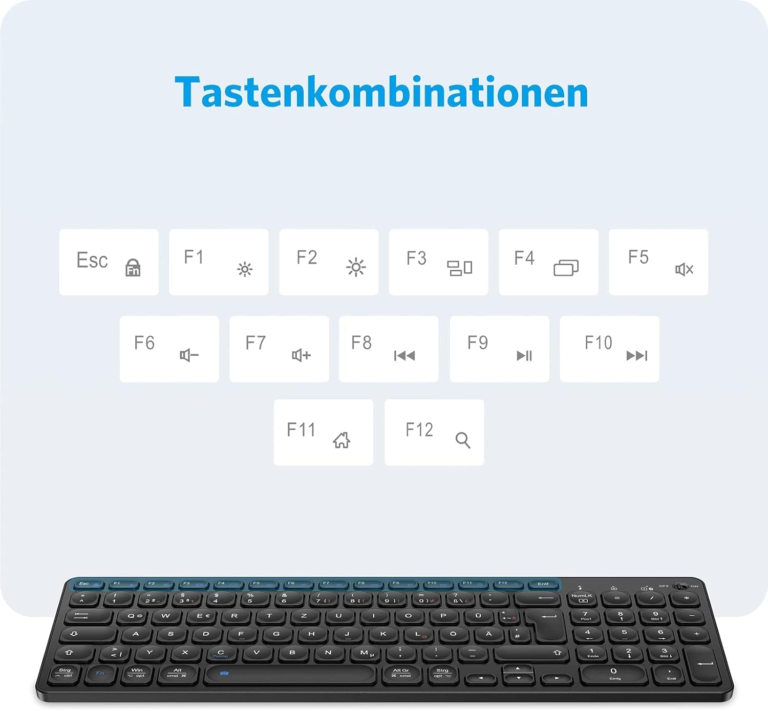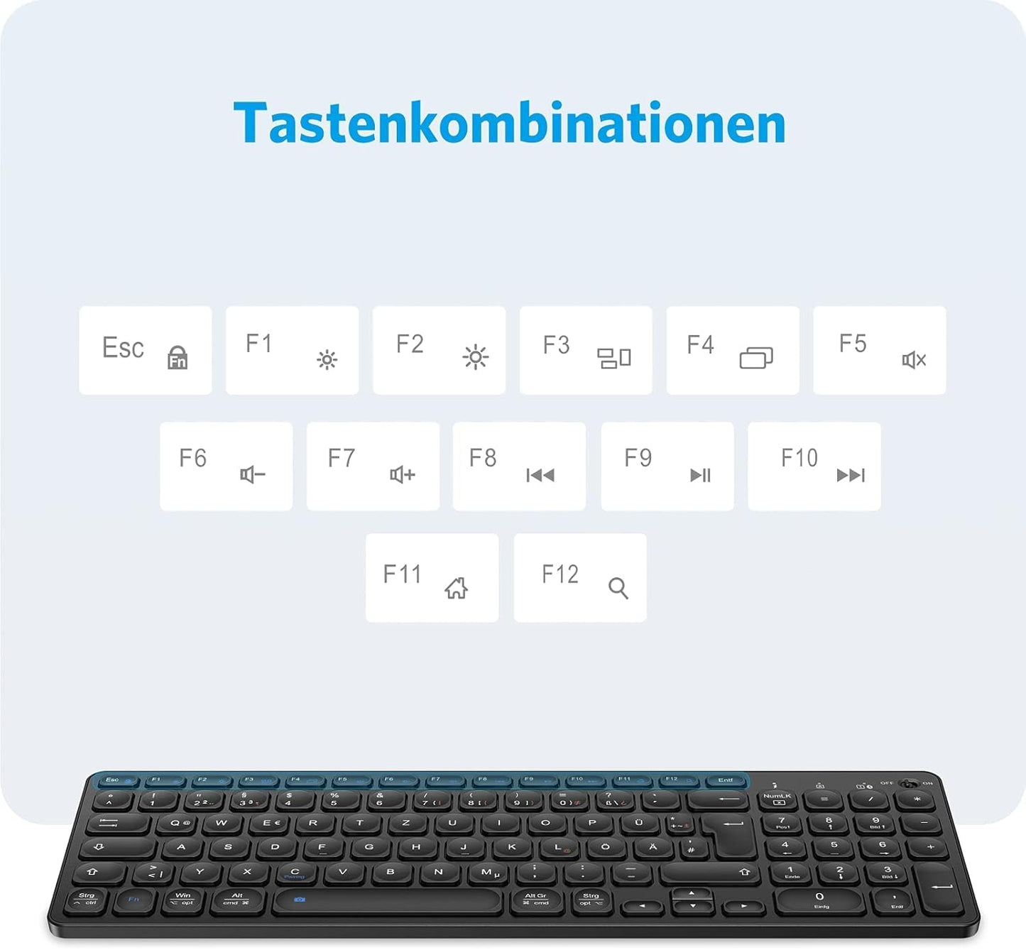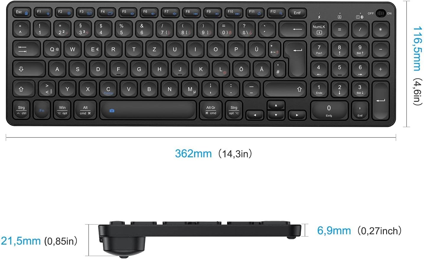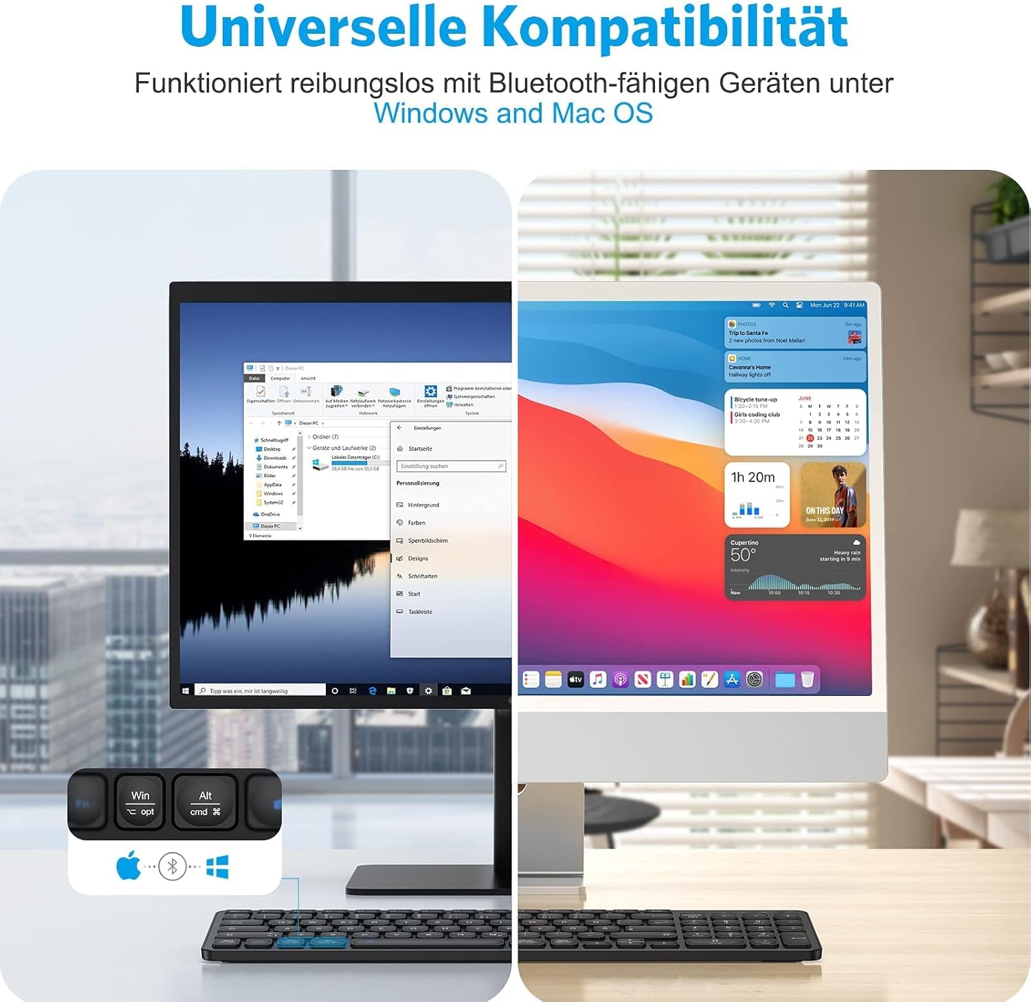 OMOTON Rechargeable Bluetooth Keyboard for MacOS and Windows, Wireless Keyboard for MacBook/MacBook Air/MacBook Pro/iMac/iMac Pro/Mac Pro and Laptop, QWERTZ DE Layout, Business Style, Black