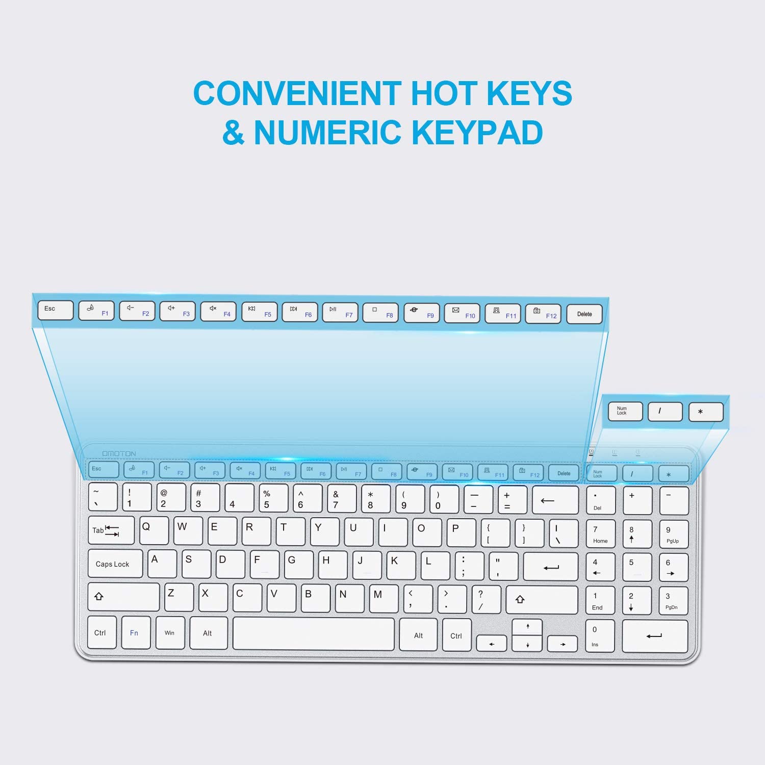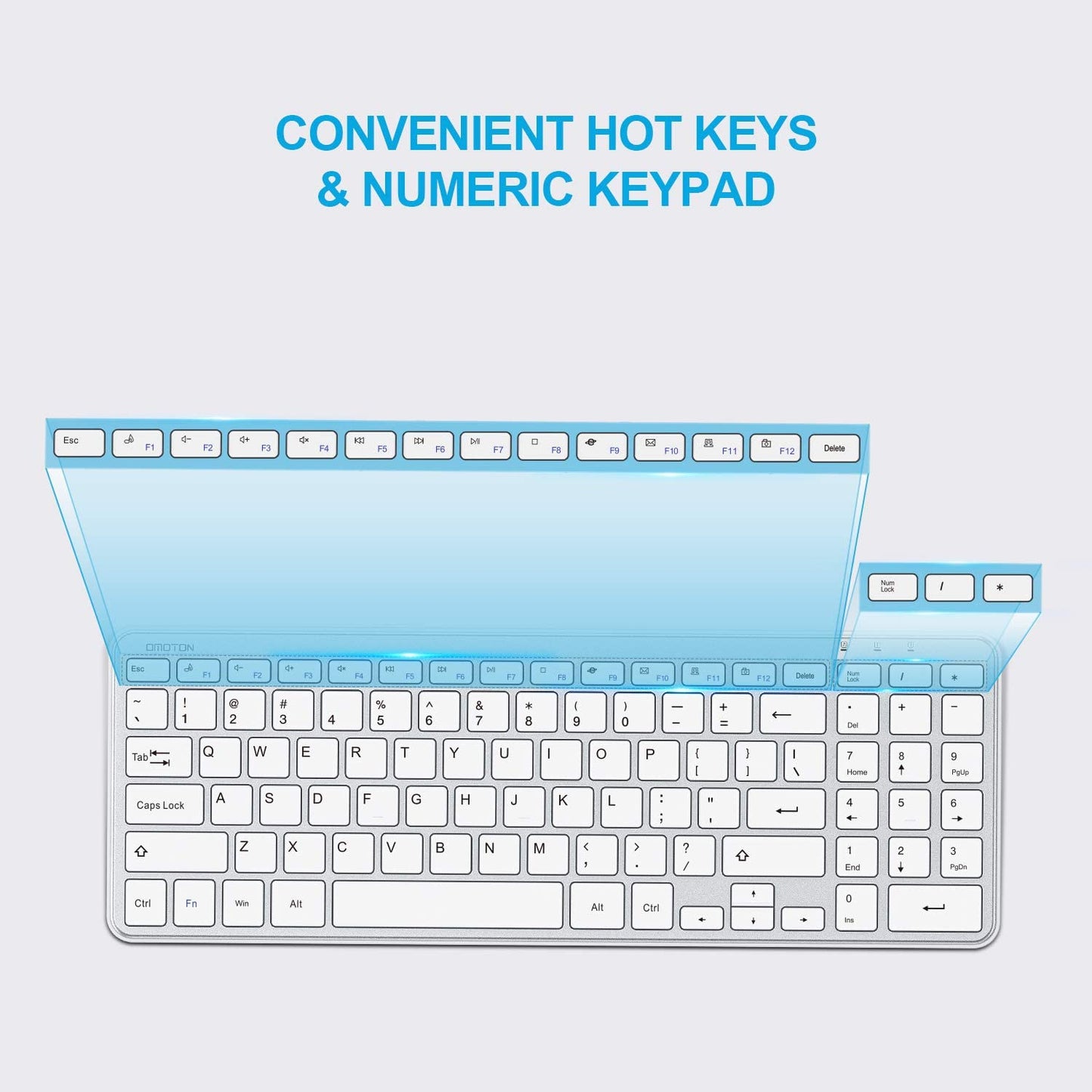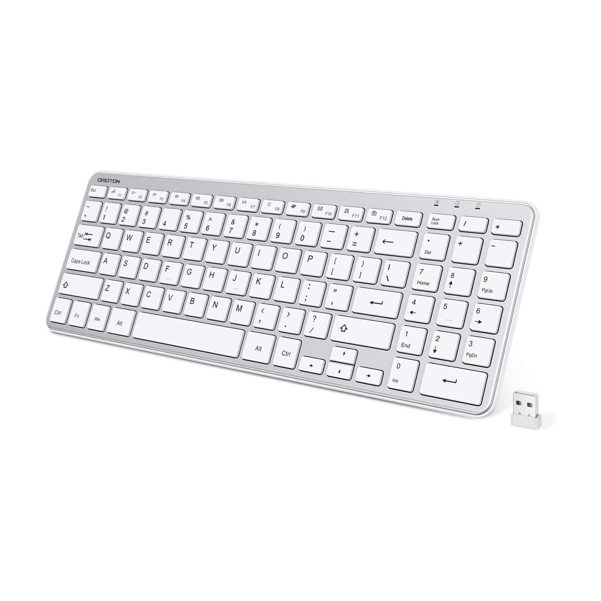 OMOTON Wireless Keyboard 2.4G Wireless Keyboard for Windows 10 8 7 UK QWERTY with USB Receiver, Ultra Slim Numeric Keyboard for Computer Desktop PC Laptop Silver