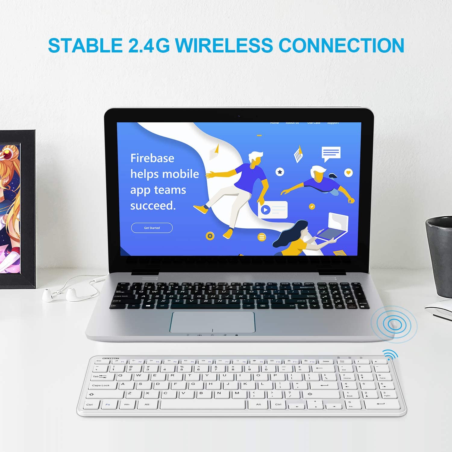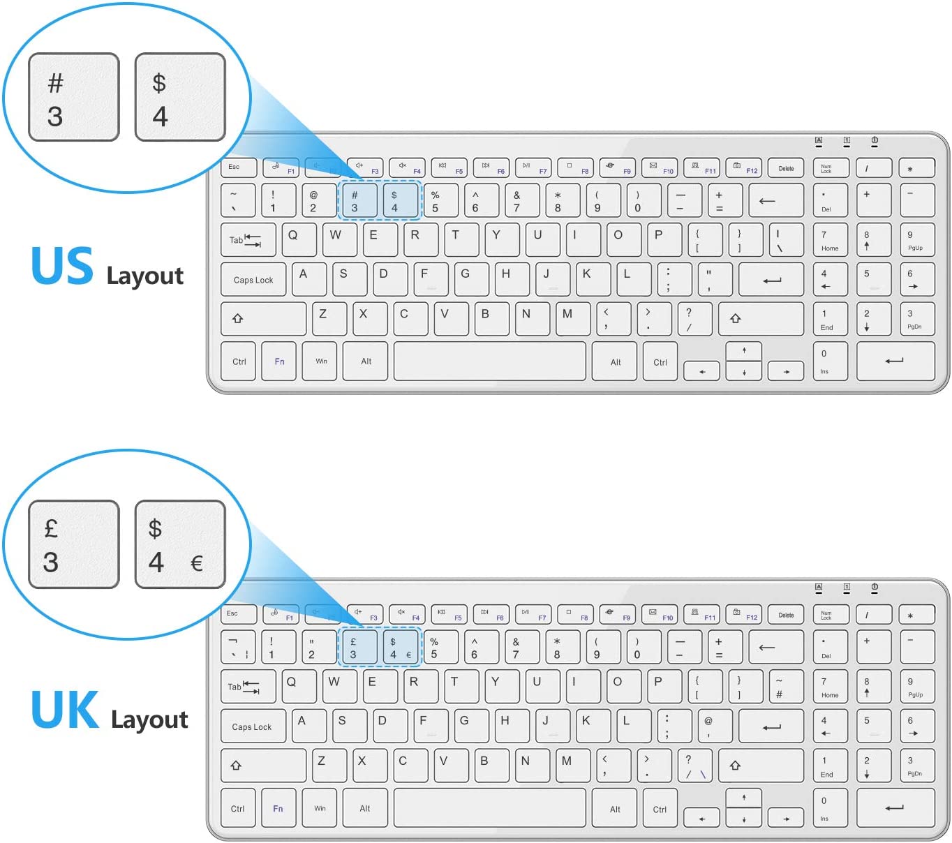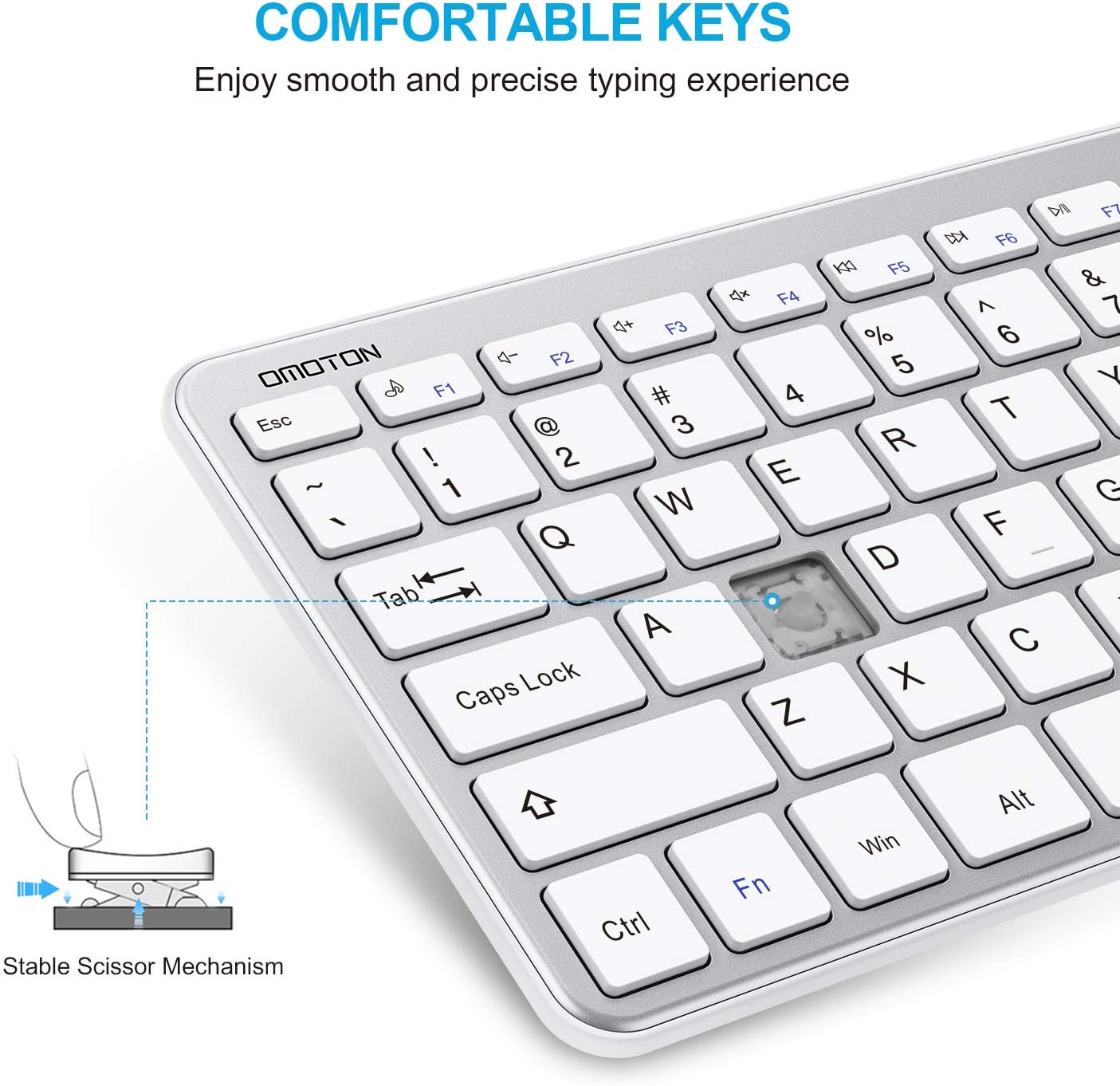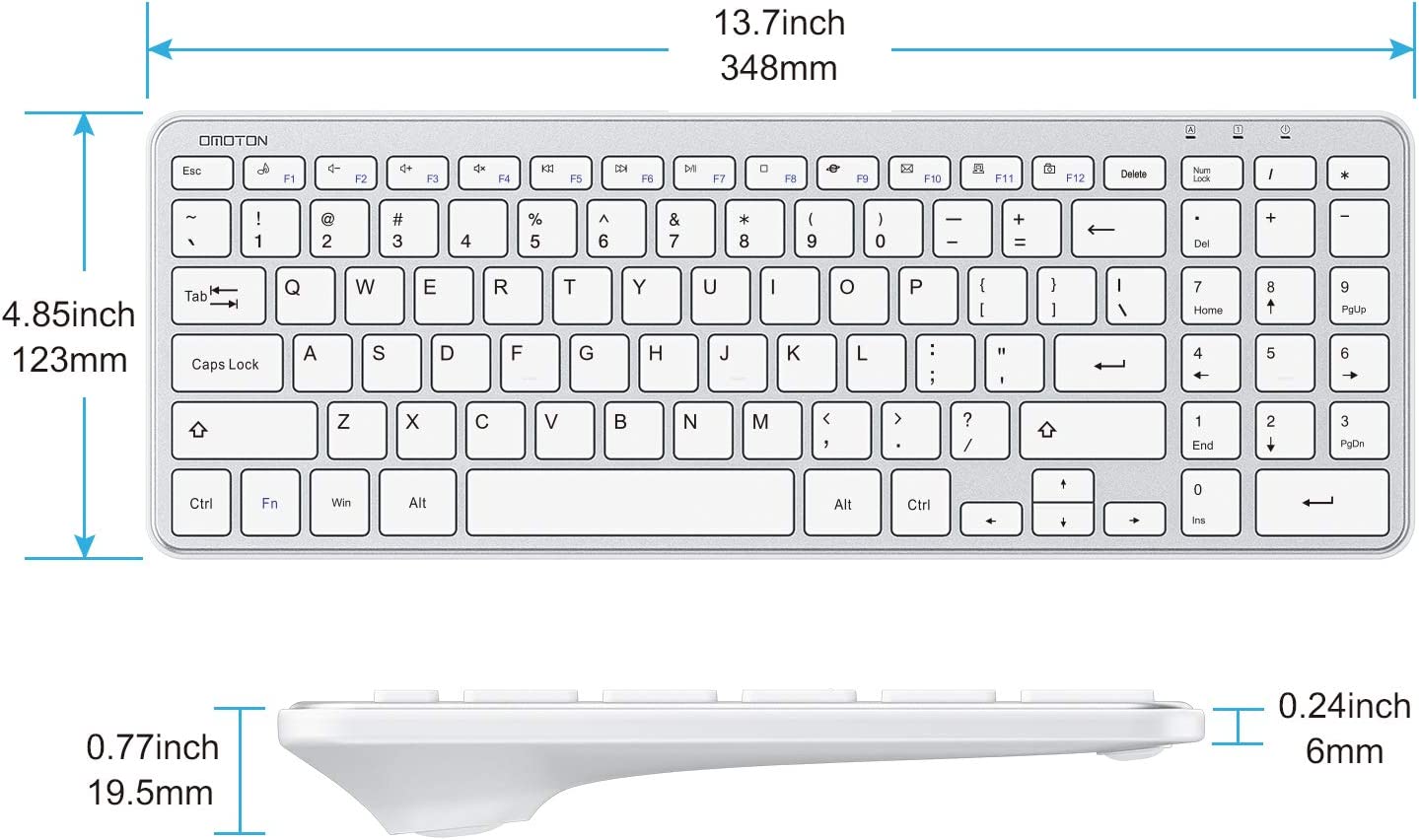 OMOTON Wireless Keyboard 2.4G Wireless Keyboard for Windows 10 8 7 UK QWERTY with USB Receiver, Ultra Slim Numeric Keyboard for Computer Desktop PC Laptop Silver