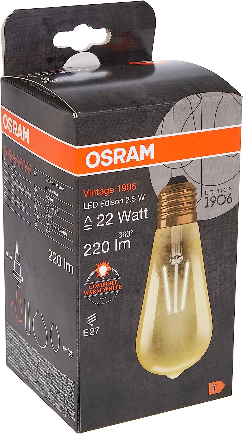 - OSRAM LED Vintage Edition 1906 / LED-lamp in Edison Form with E27-base / not dimmable / replacement for 2.8 Watt / clear / warm white - 2400 Kelvin / 1 pack [Energy Class E]