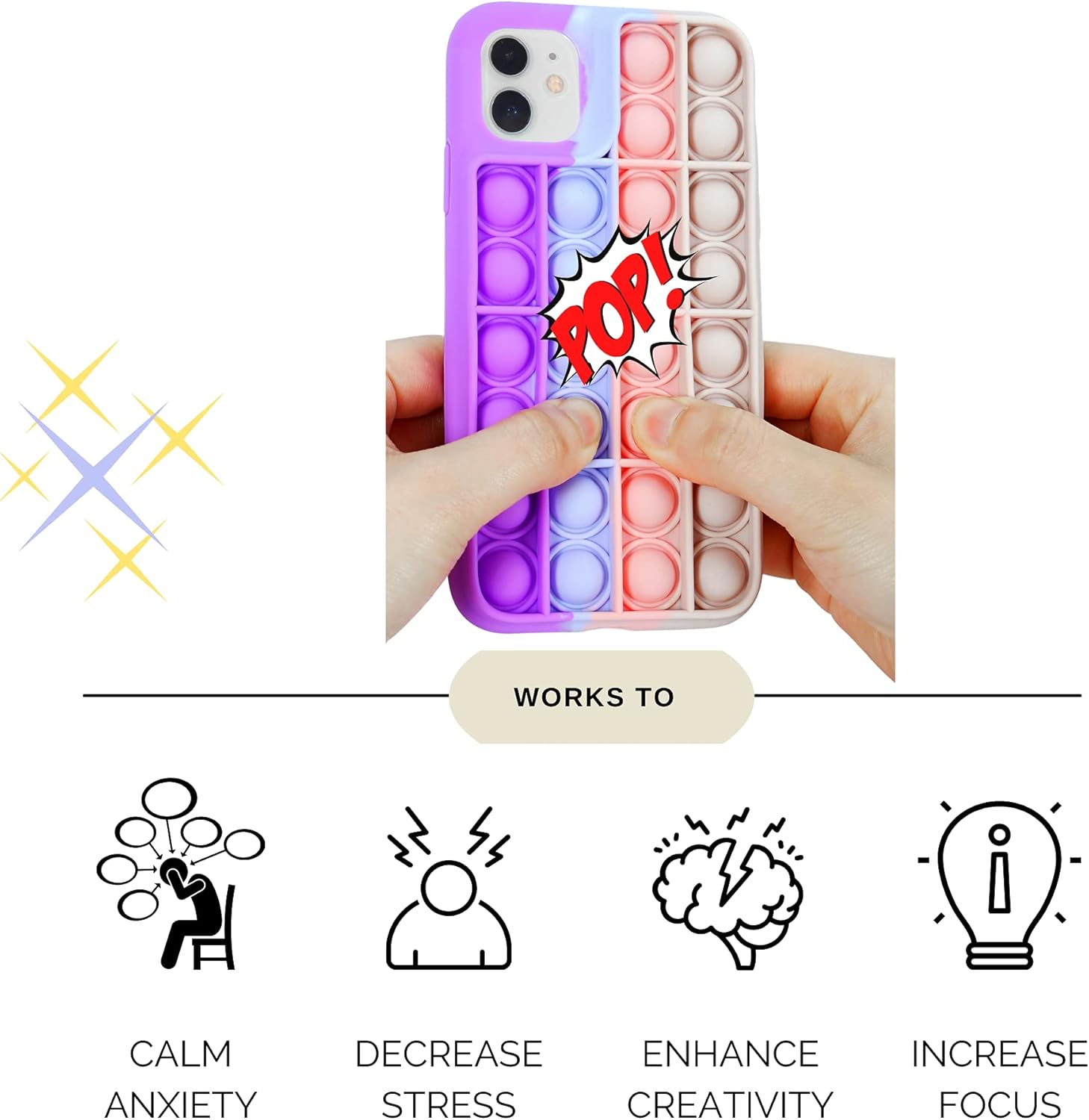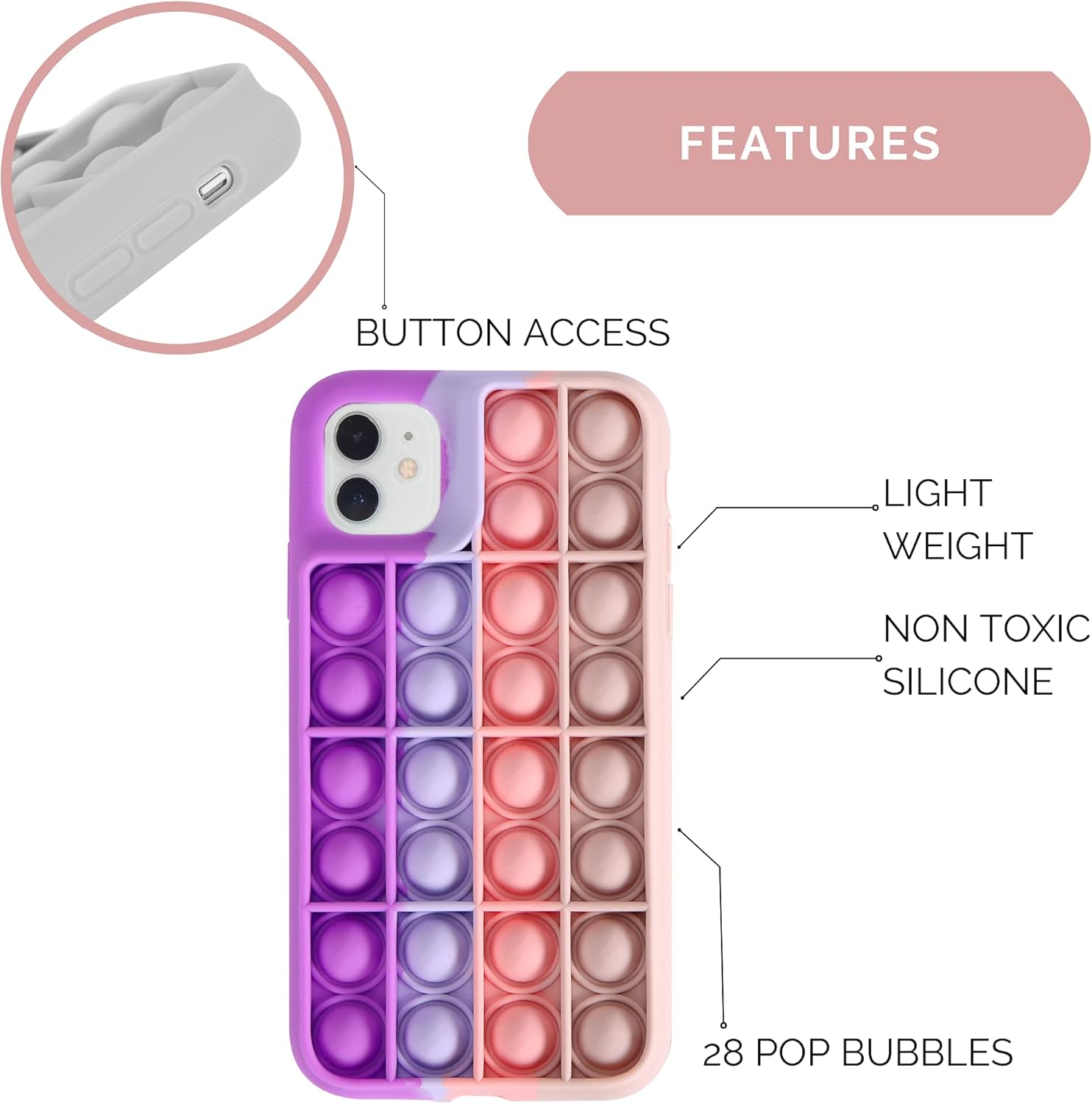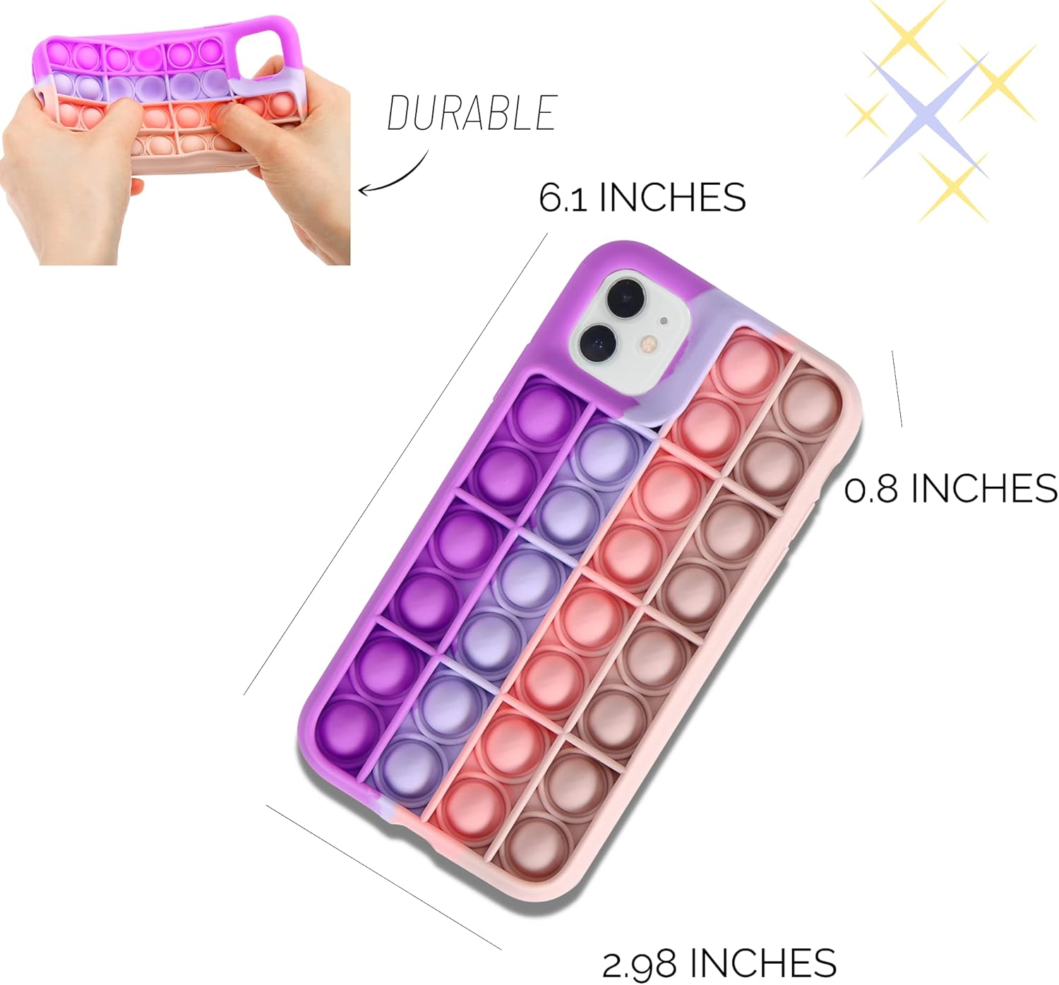 Pop It Phone Case iPhone 11- Fidget Toy and Sensory Push Pop Bubble Case in Pink Purple