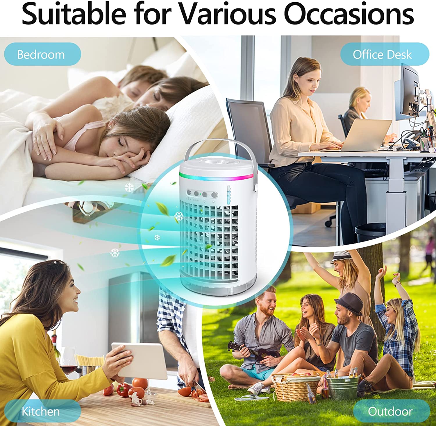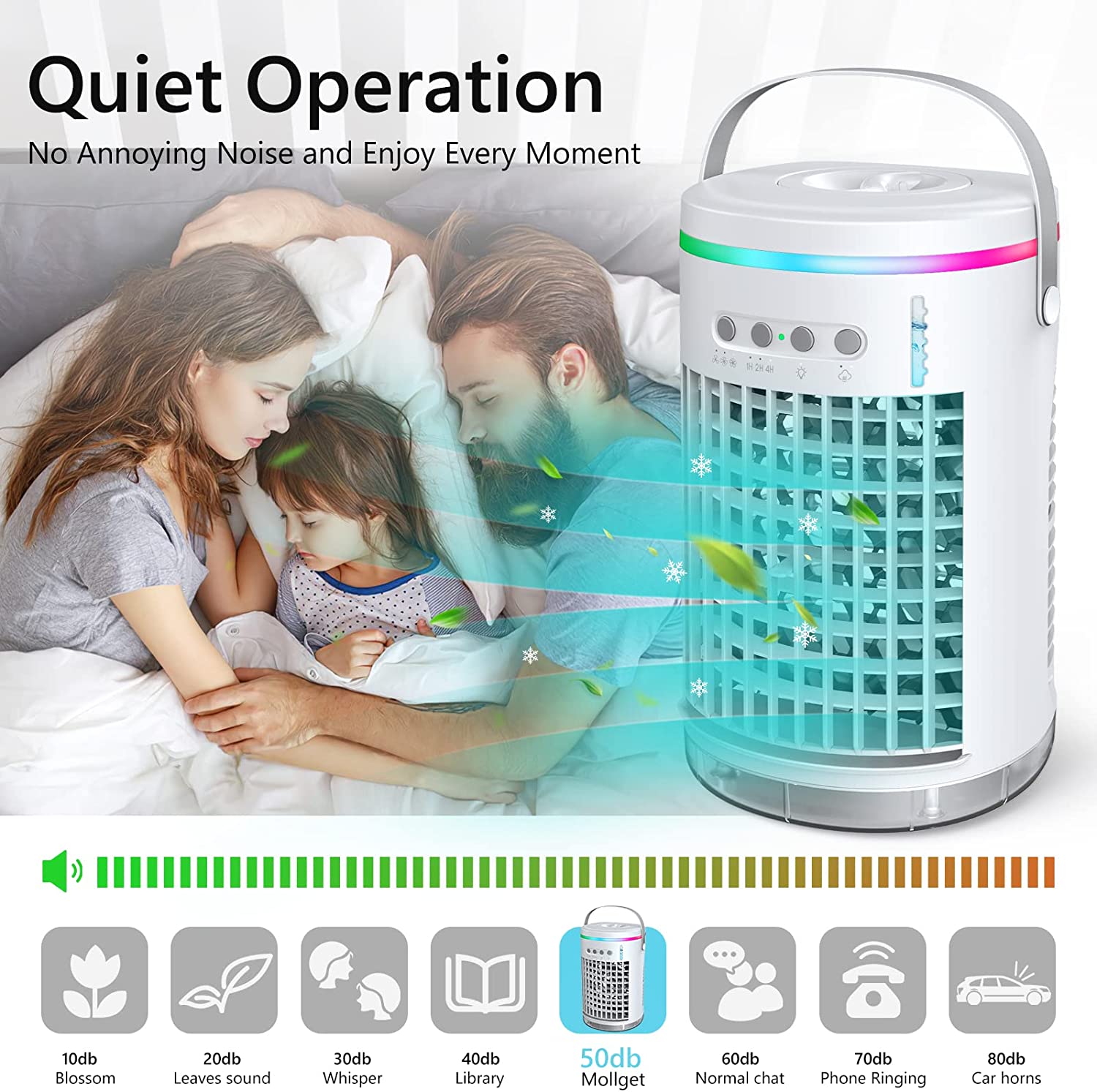 The lights change with the time. It can create a romantic, gorgeous, interesting, magical atmosphere for your bedroom.This will provide you and your family comfortable nap a deep sleeping.Let's enjoy the dynamic and quiet atmosphere with Mollget portable air conditioner