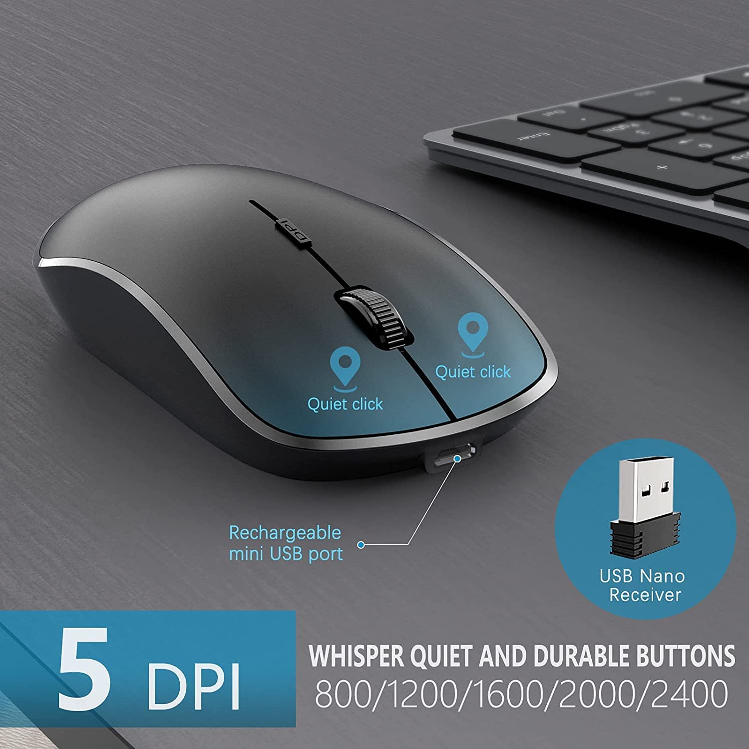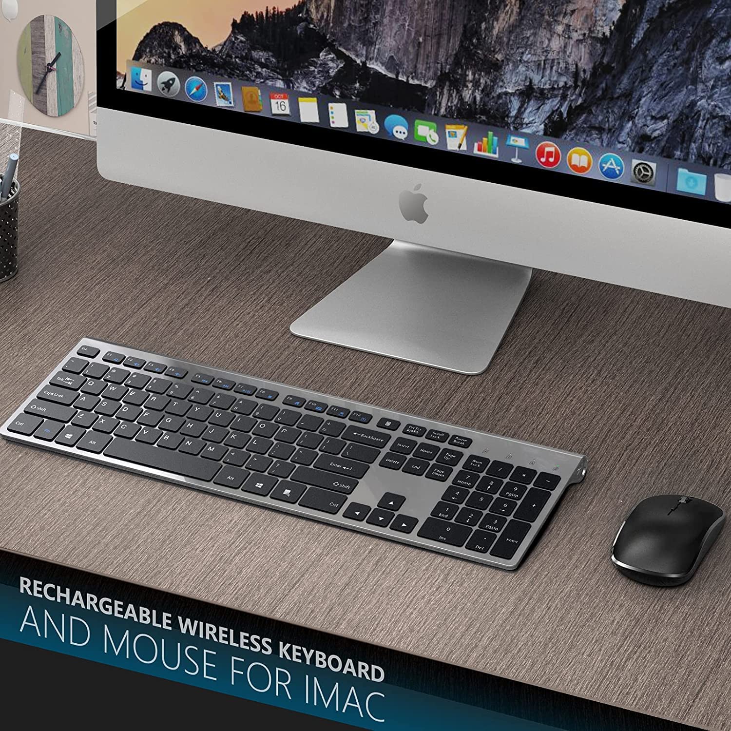 Rechargeable Wireless Keyboard Mouse-J JOYACCESS 2.4G Full Size Thin Wireless Keyboard and Mouse with Long Battery Life, Ergonomic and Compact Design for Laptop,PC,Desktop,Computer,Windows-Black& Grey
