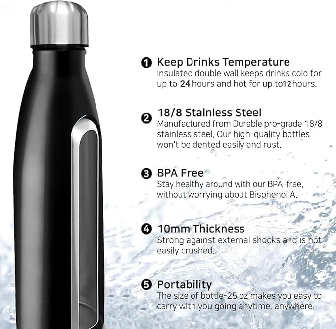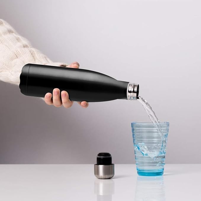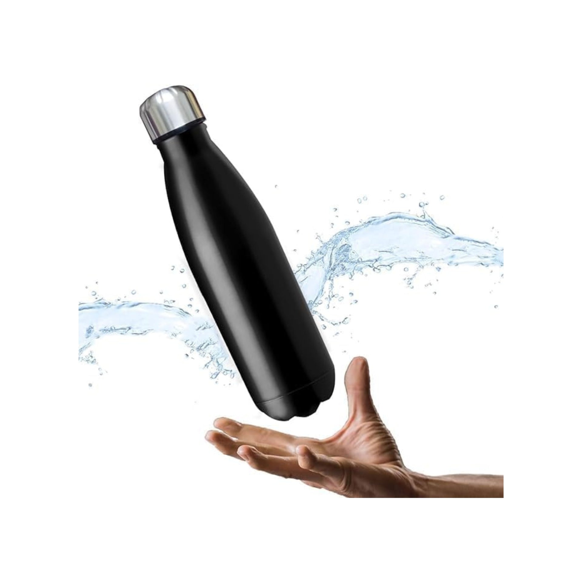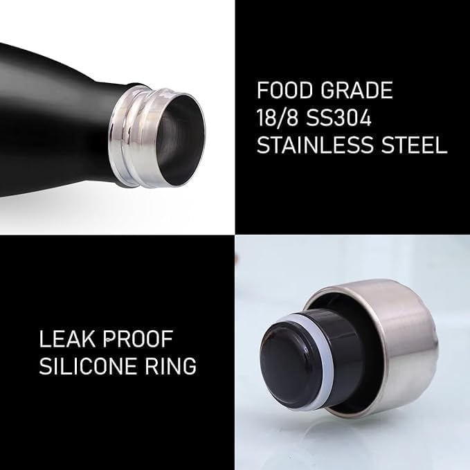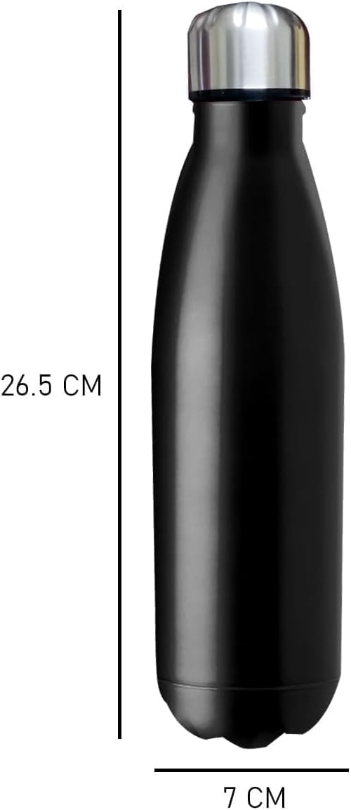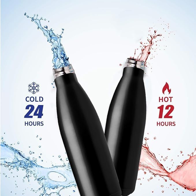 - Stainless Steel Water Bottle, BPA Free Metal Vacuum, Sport Drink Bottle for Cold&Hot Drinks, Double Wall, Leak-proof for Outdoor, Easy to Clean, Stylish and Travel Friendly (500ml) (Black)