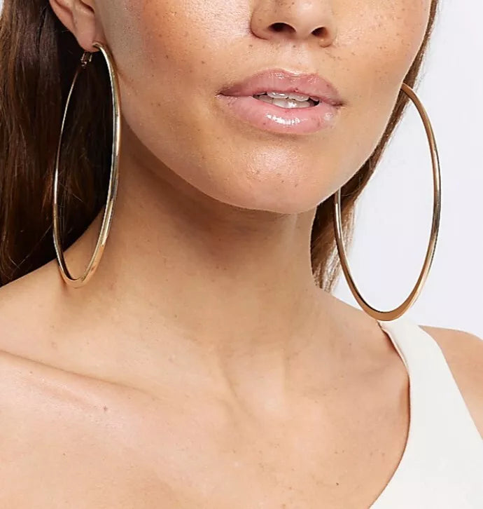 River Island Gold Large Round HOOP Earrings 80mm Shiny Ladies HOOP