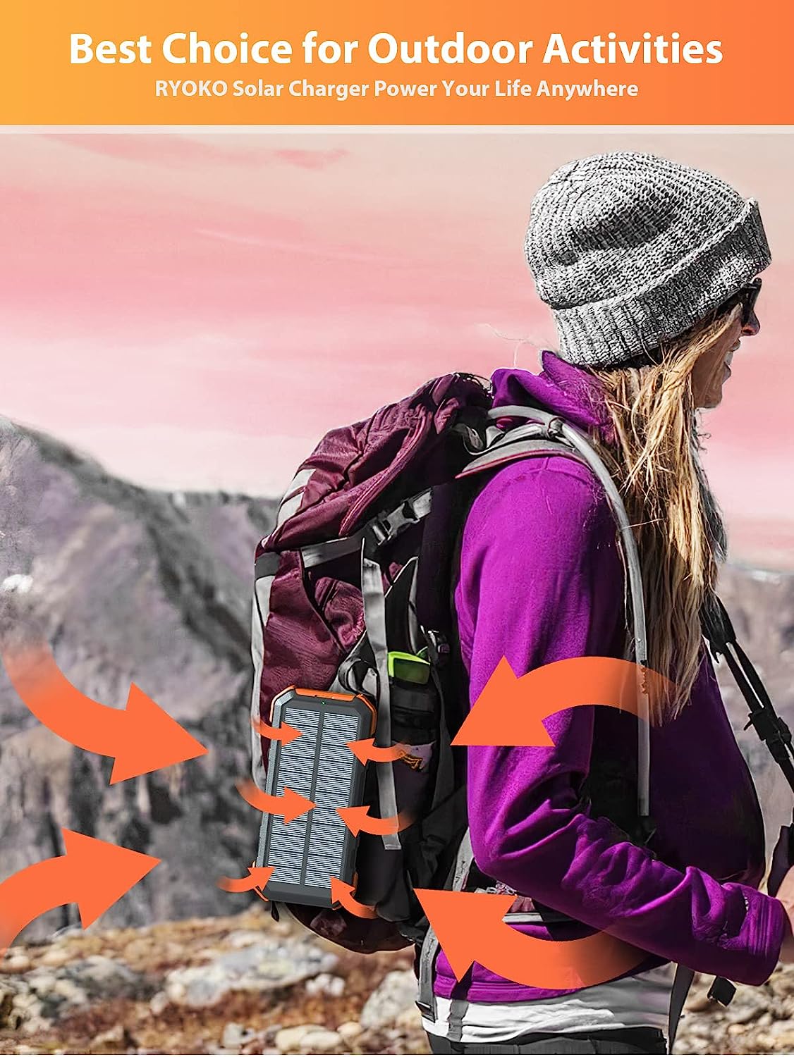 - Ryoko Solar Charger Power Bank, 30000mAh Solar Phone Charger with 10W Wireless Charging, Dual USB & Type-C Port, QC 18W Fast Charging Power Bank for iPhone, Samsung, Switch, Tablet