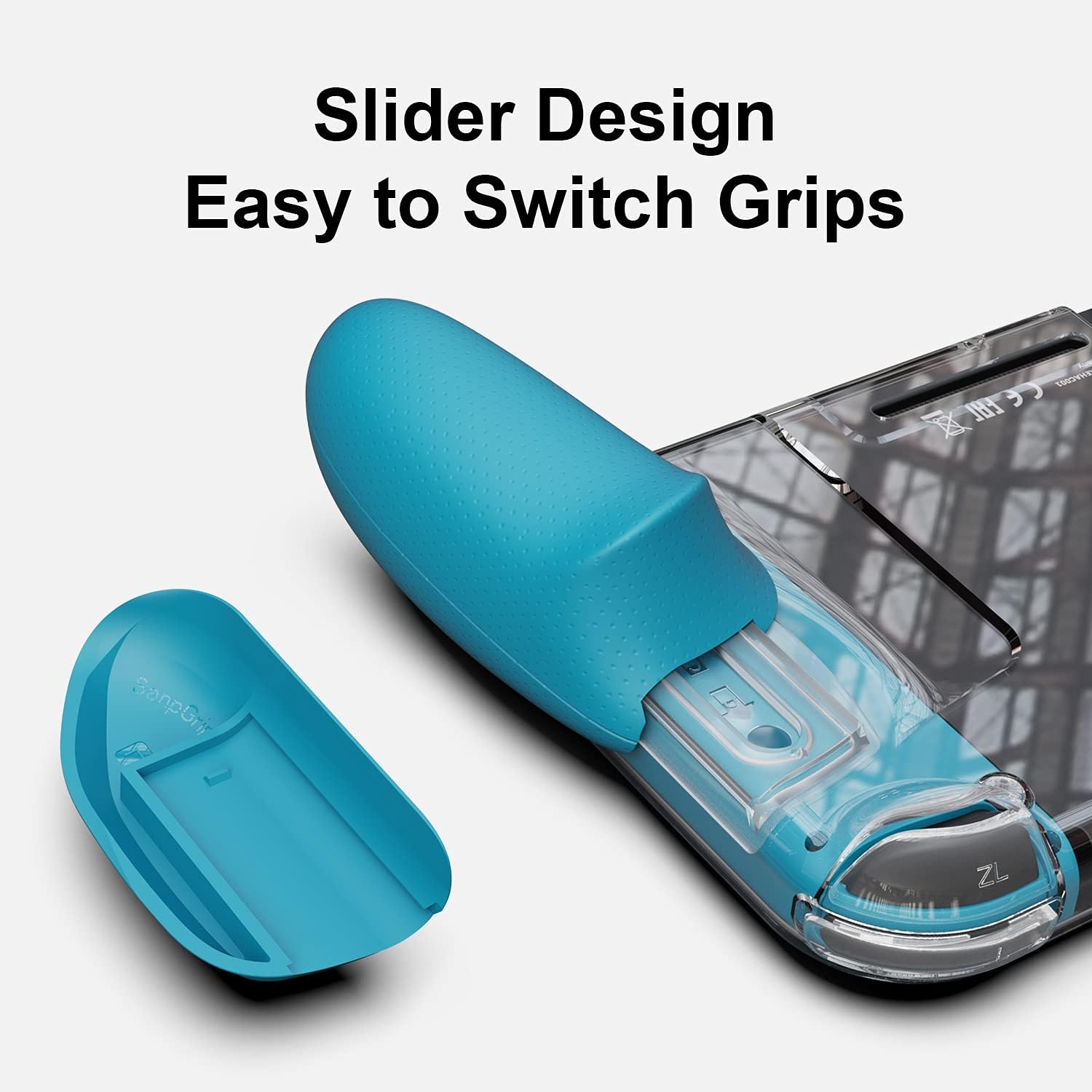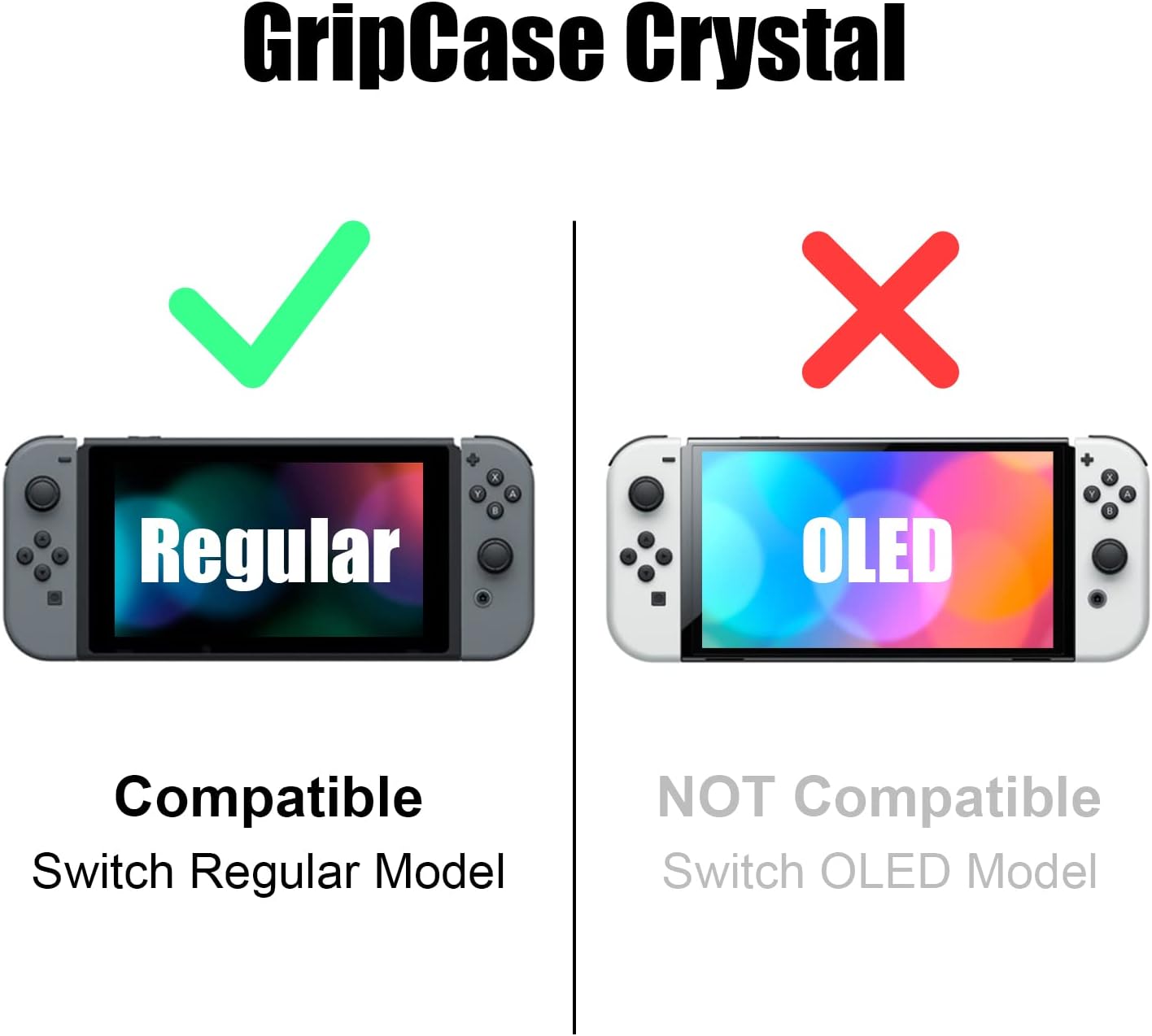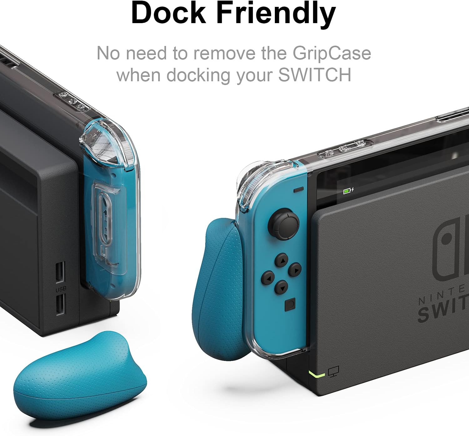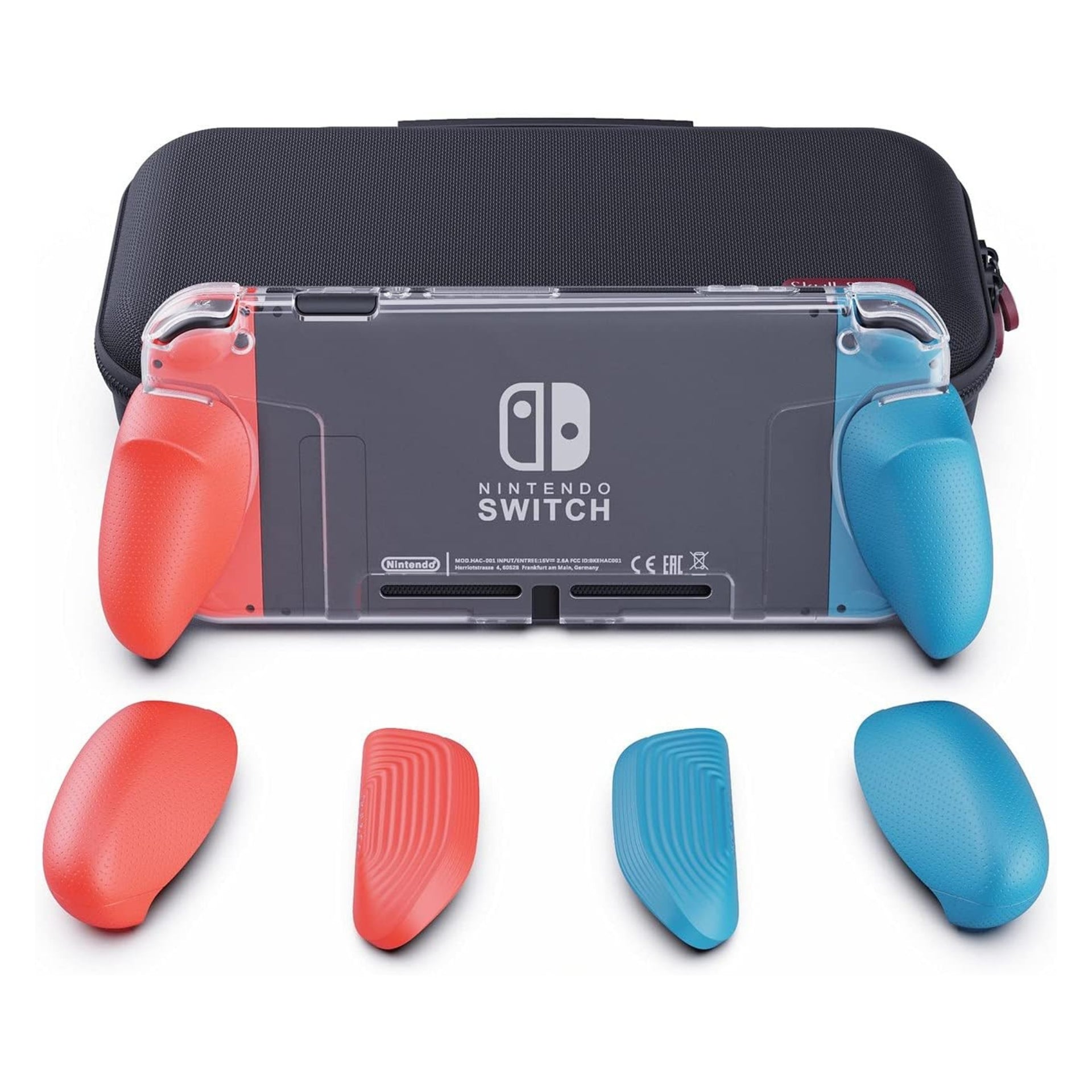 Skull & Co. GripCase Crystal Bundle: A Dockable Transparent Protective Cover Case with Replaceable Grips [to fit All Hands Sizes] for Nintendo Switch -Neon Red & Blue