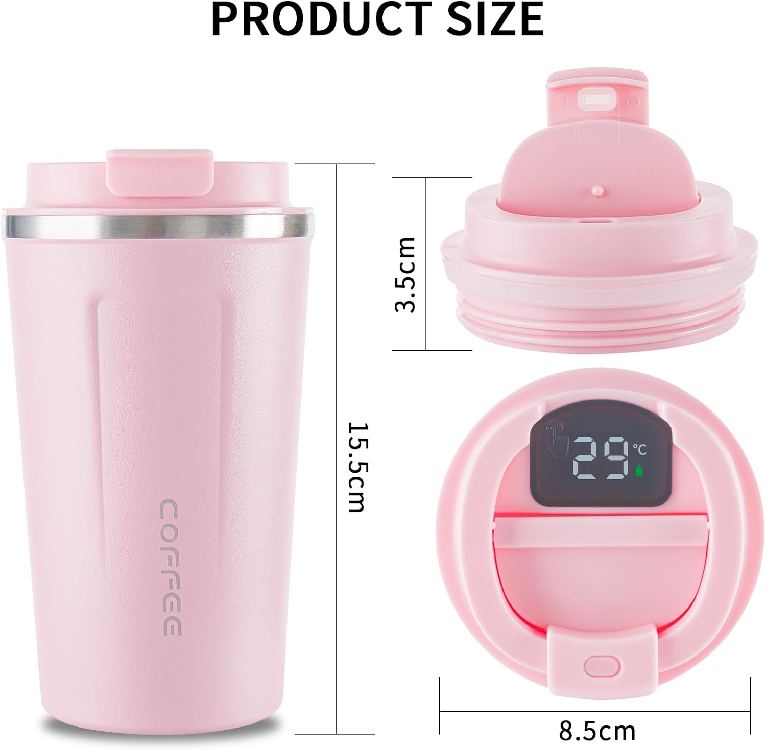 Stainless Steel Vacuum Insulated Travel Coffee Mug, Led Temperature Display Insulated Tumbler, Leak Proof with Lid Keeps Cold and Warm, Suitable for Coffee, Tea and Beer - 510ml