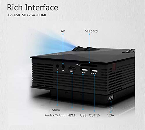 - Output: 3.5mm earphone, Speaker: 8Ω1W, Short-focus Design: 2M-> 70-inch,3M->100-inch