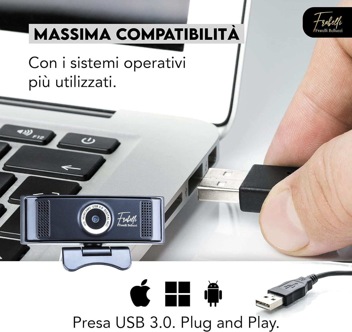 Webcam PC with Microphone Audio Full HD Video Camera Cover Camera Privacy Camera Smart USB Cable Rotatable Professional Small for Streaming Video Conference Laptop Fixed Computer Windows Android