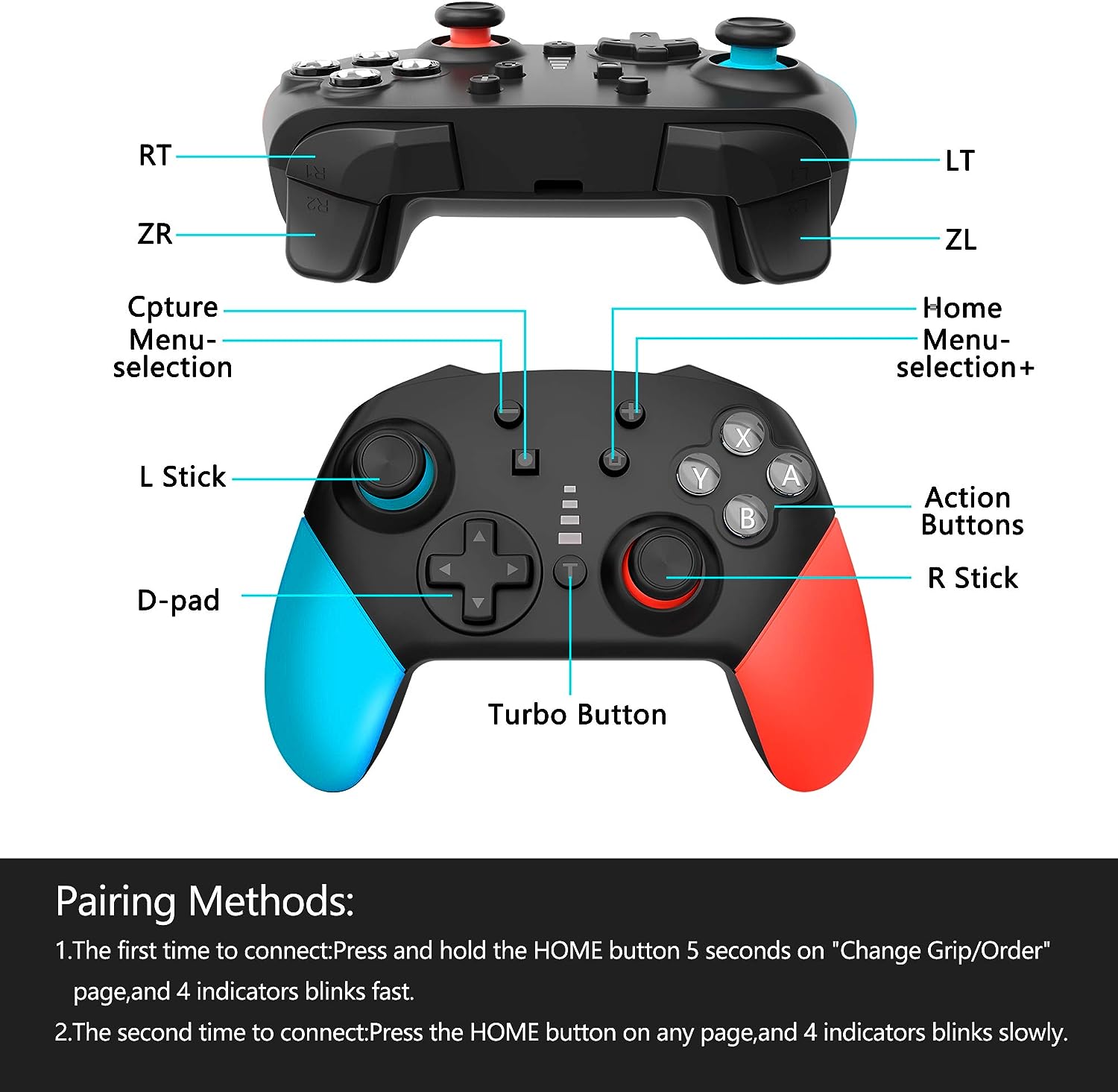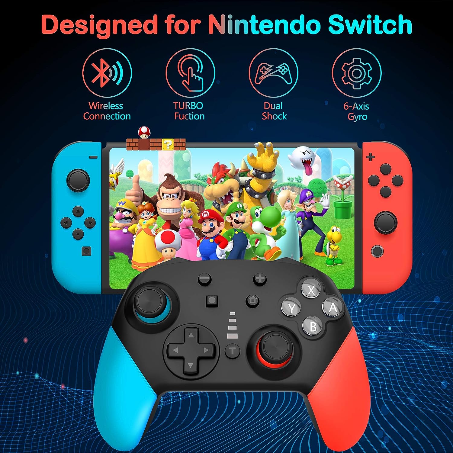 - Wireless Pro Controllers for Nintendo Switch, Professional Controller Remote Gamepad Joystick for Switch Controller with Turbo Function, Double Vibration, and 6 Axis-Gyro